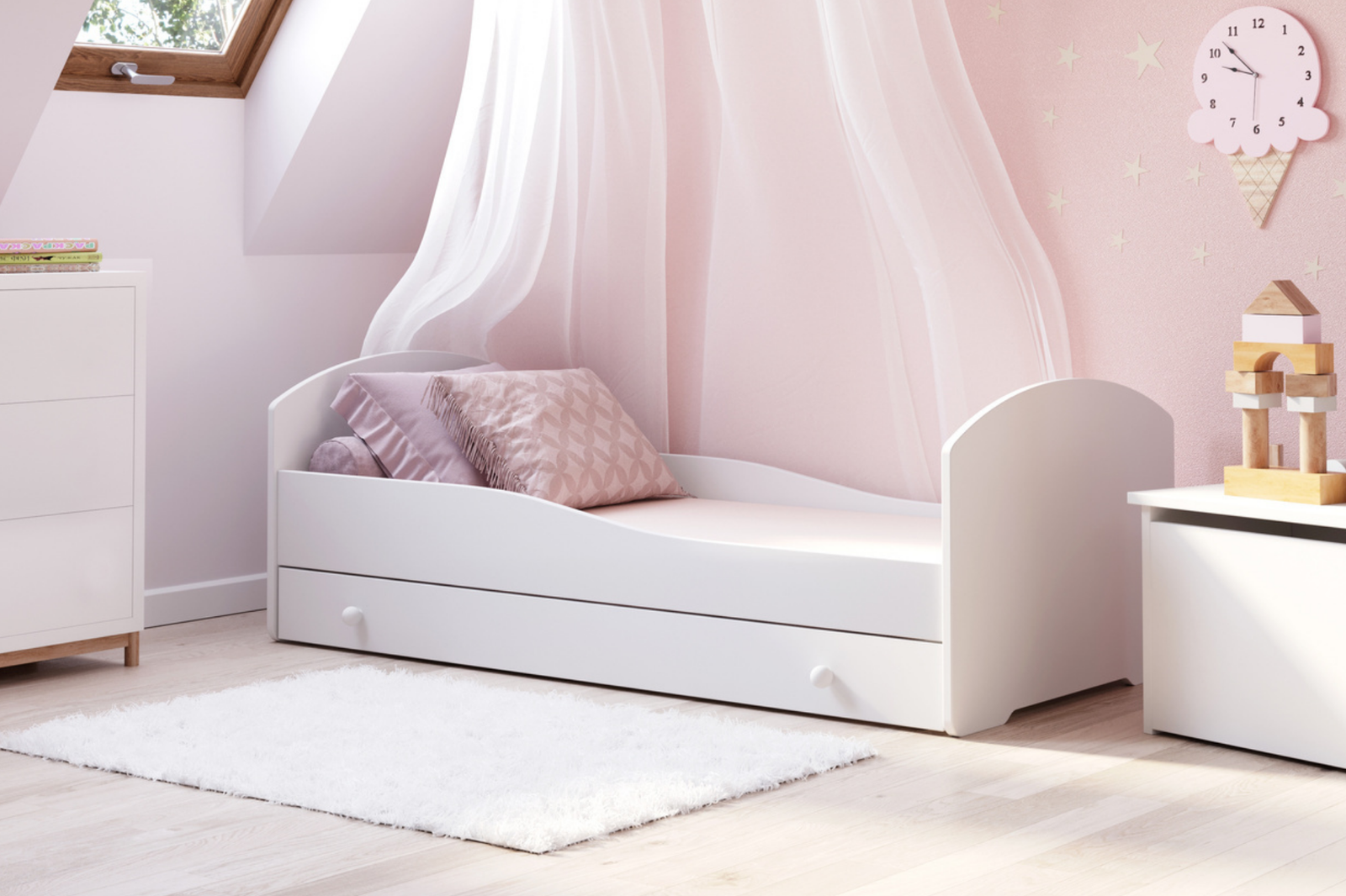 Łóżko dziecięce LUK z szufladą to idealne połączenie funkcjonalności i komfortu dla Twojego dziecka. Ten mebel, zaprojektowany z myślą o bezpieczeństwie oraz wygodzie, doskonale wpisuje się w różnorodne aranżacje pokoju dziecięcego, zarówno dla chłopców, jak i dziewczynek.