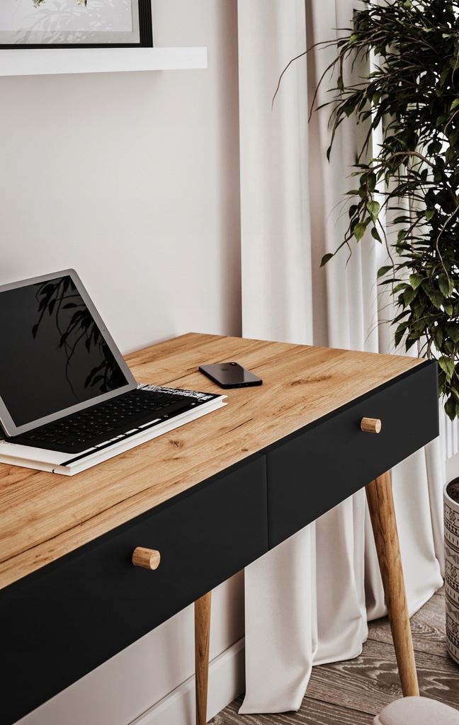 Dostępne są dwie wersje biurka z różnymi szerokościami – 100 cm i 120 cm. Możesz wybrać odpowiednią dla swojego wnętrza, tak aby idealnie dopasować biurko do dostępnej przestrzeni. Biurko o szerokości 120 cm dostępne jest w innej ofercie.