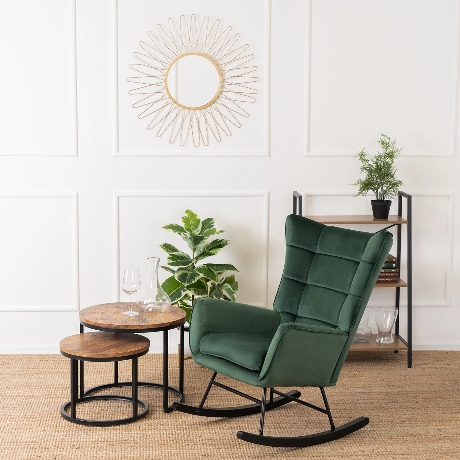 - Płozy wykonane z drewna, co zapewnia płynne i delikatne bujanie, idealne do wyciszenia.