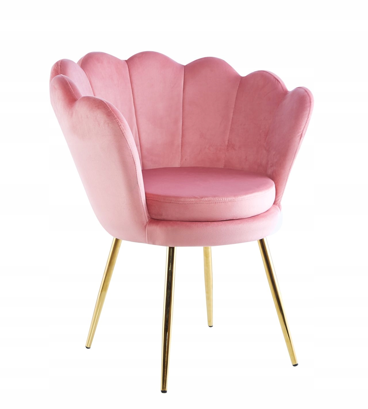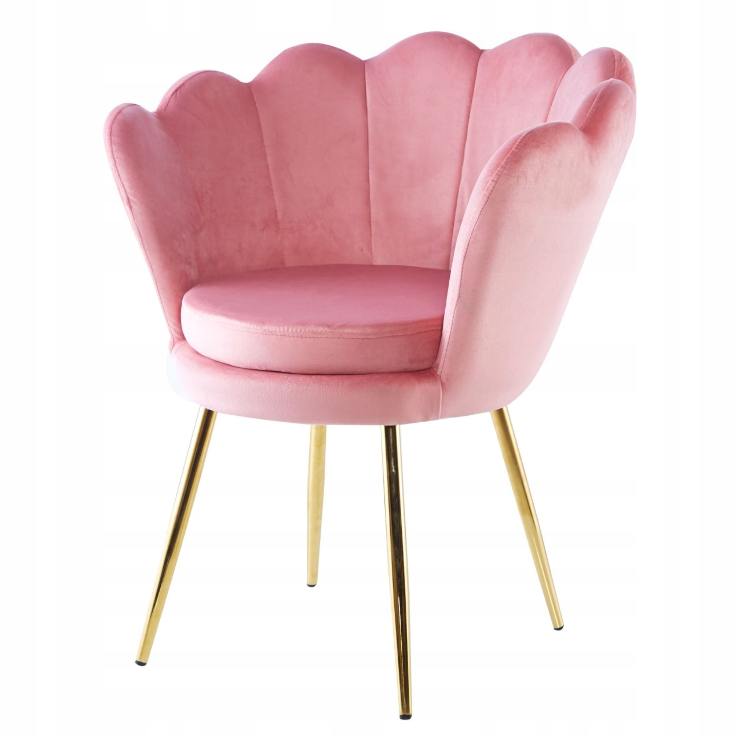 Fotel Różowy Welurowy Elegancki na ZŁOTYM STELAŻU Muszelka do SALONU