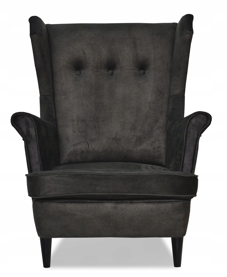 Fotel, którego dotyczy aukcja, wykonany został w tkaninie AURA 16 – grafitowy, ciemnyszary.