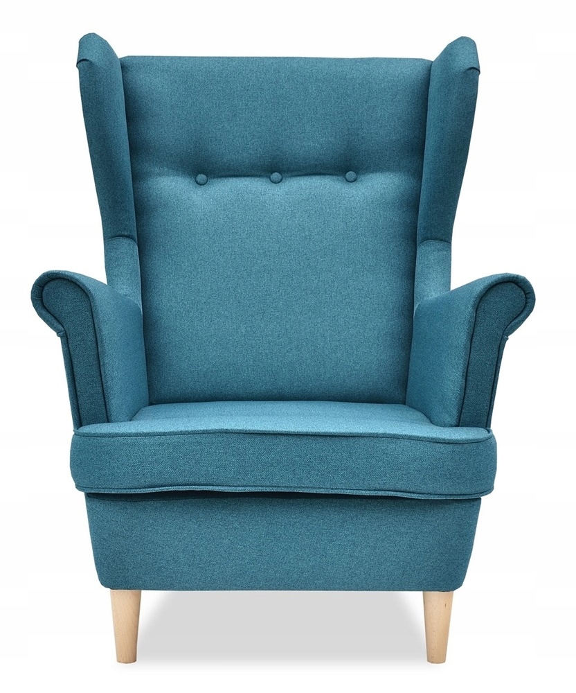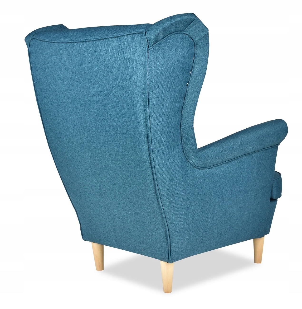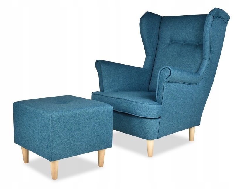 Fotel Uszak ARI w stylu skandynawskim z podnóżkiem – turkusowa plecionka.