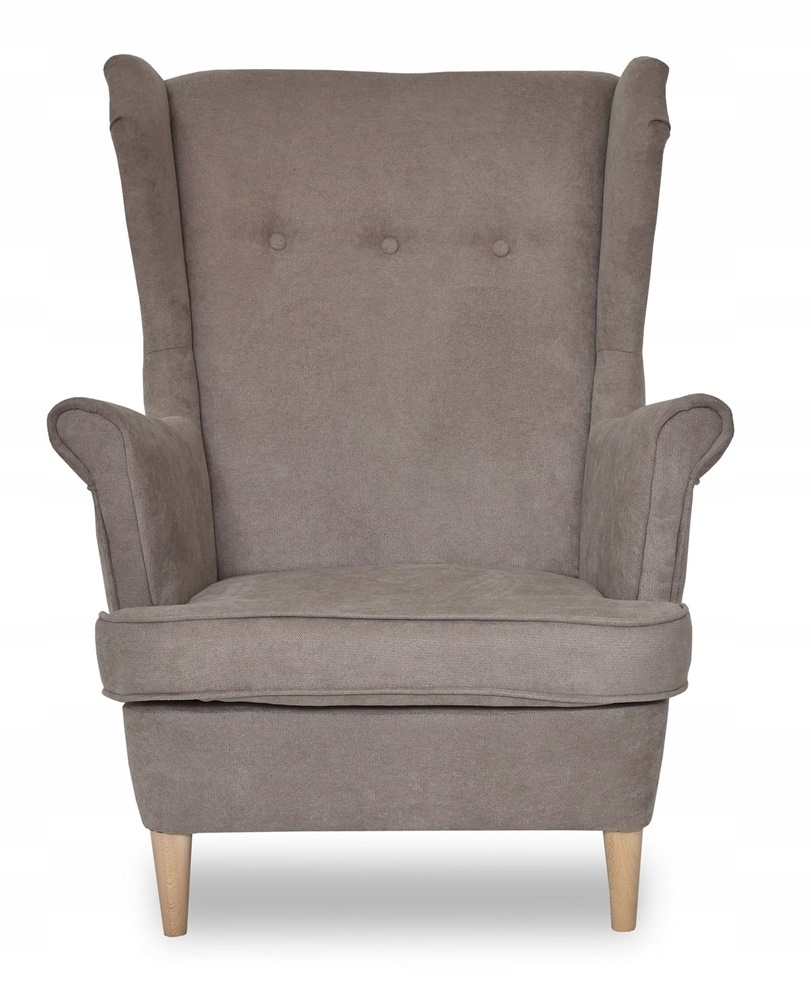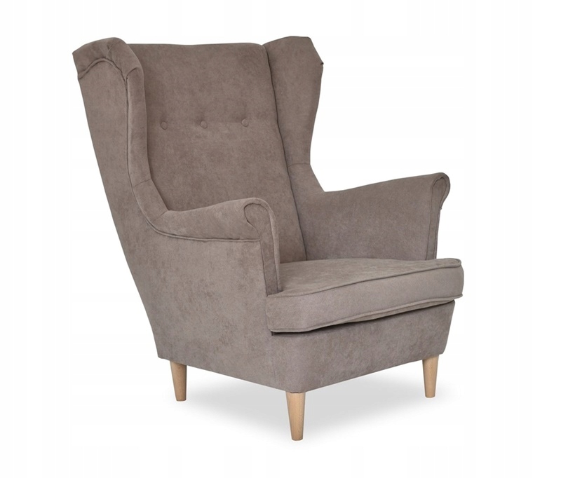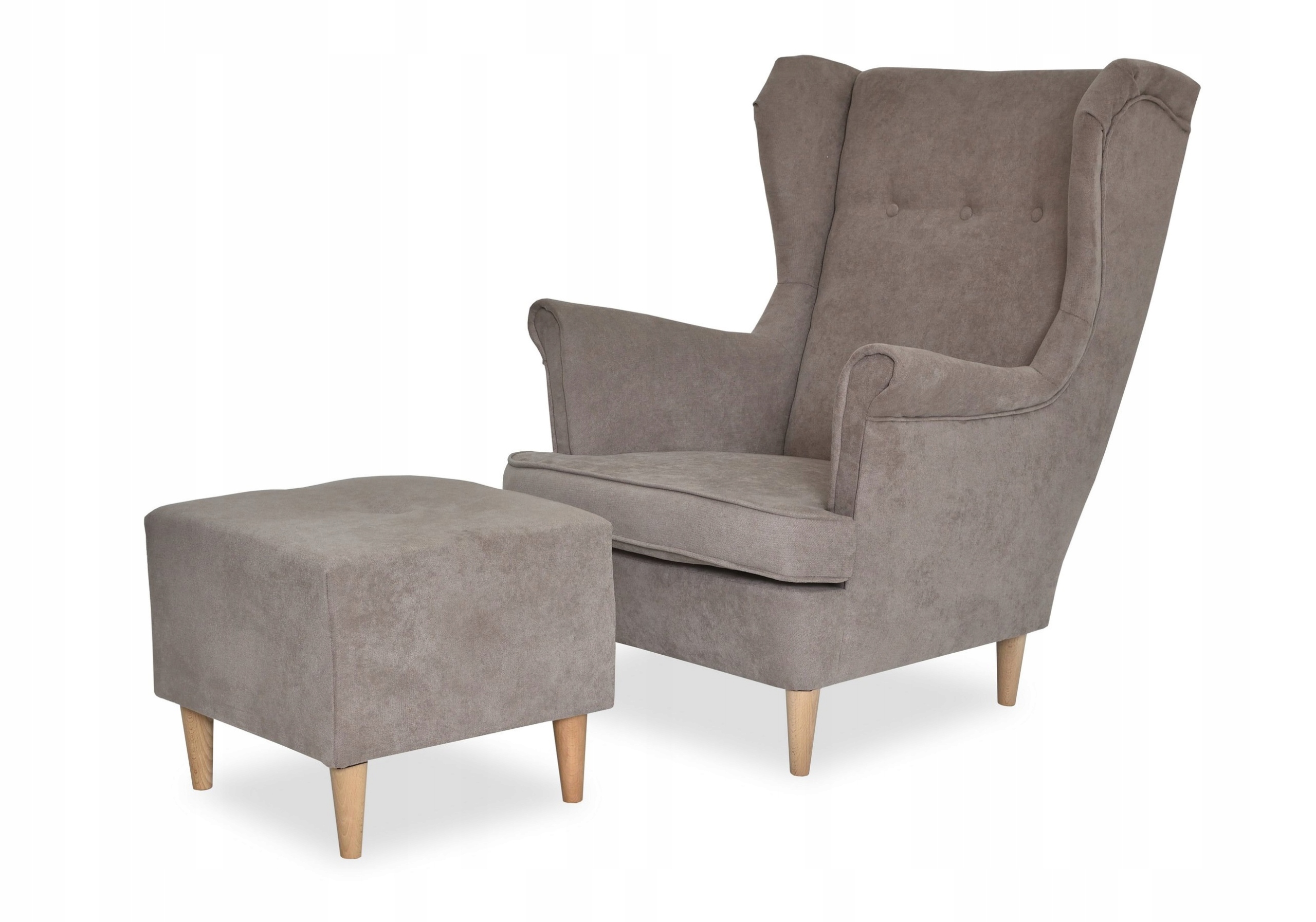 Fotel Uszak ARI w stylu skandynawskim z podnóżkiem – cappuccino