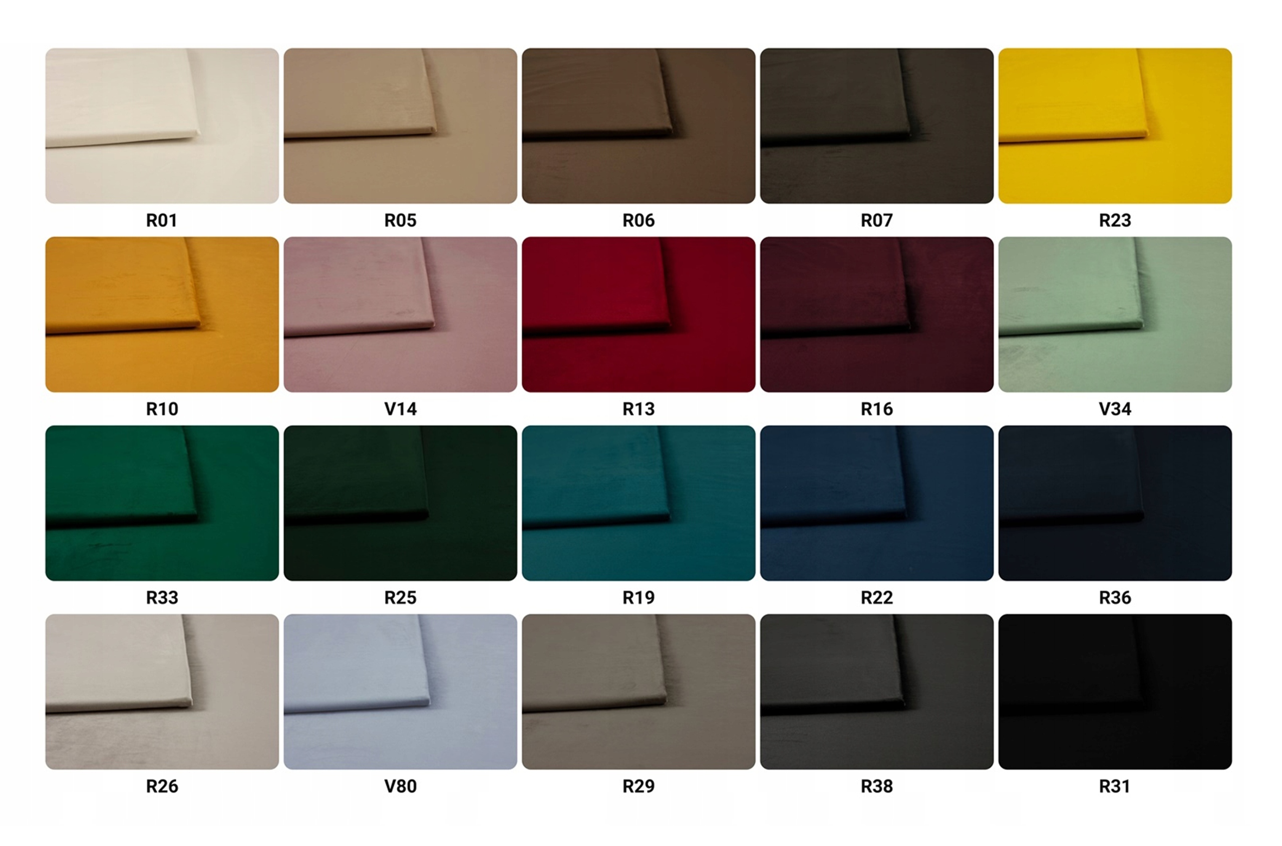 Welurowa tkanina z grupy welwetów o włosiu średniej długości, który zapewnia delikatny efekt cieniowania i pięknie połyskuje w świetle. Jest bardzo miła i przyjemna w dotyku oraz posiada specjalną hydrofobową powłokę. Podszycie warstwą podkładową czyni ją stosunkowo grubą.