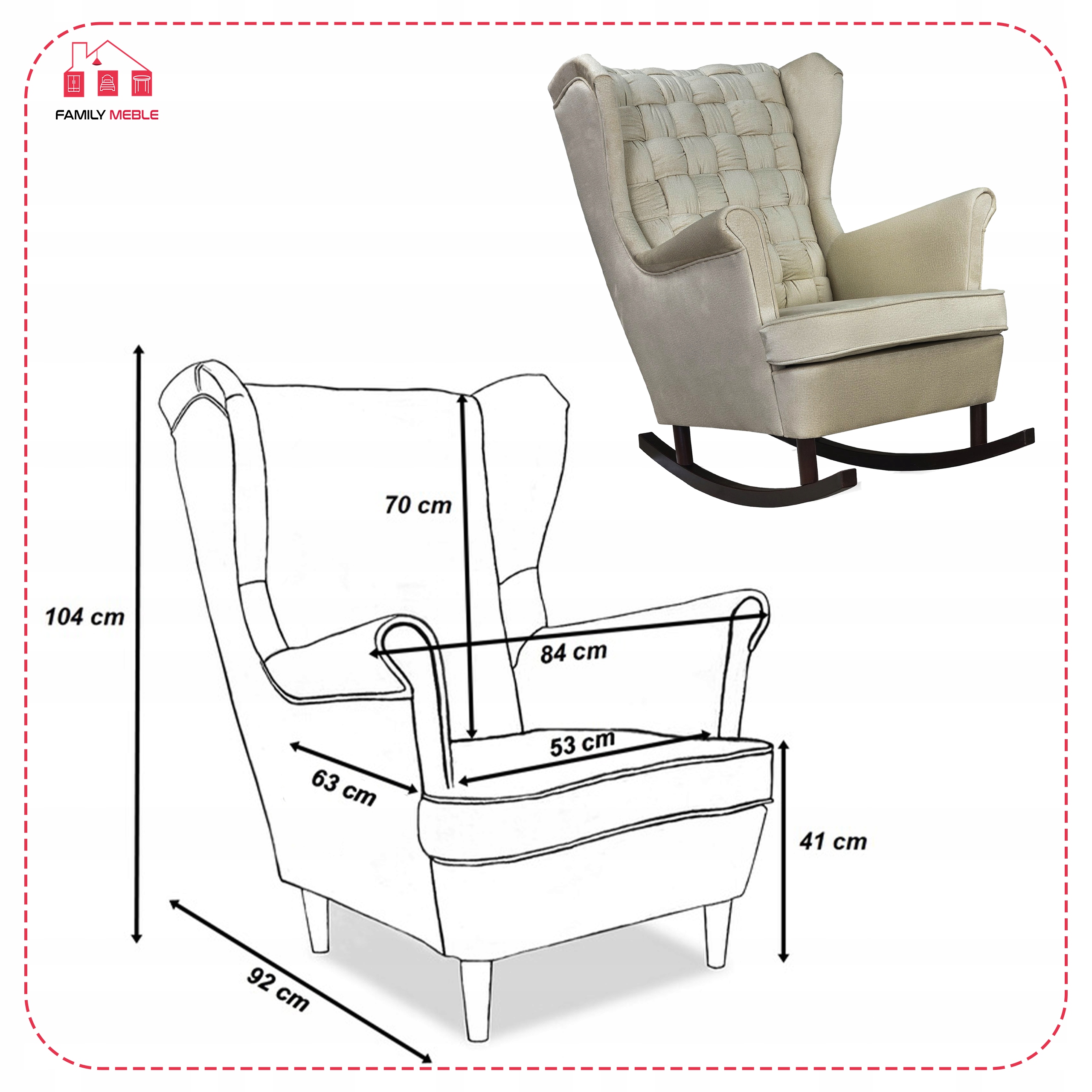 - wysokość siedziska: 41 cm