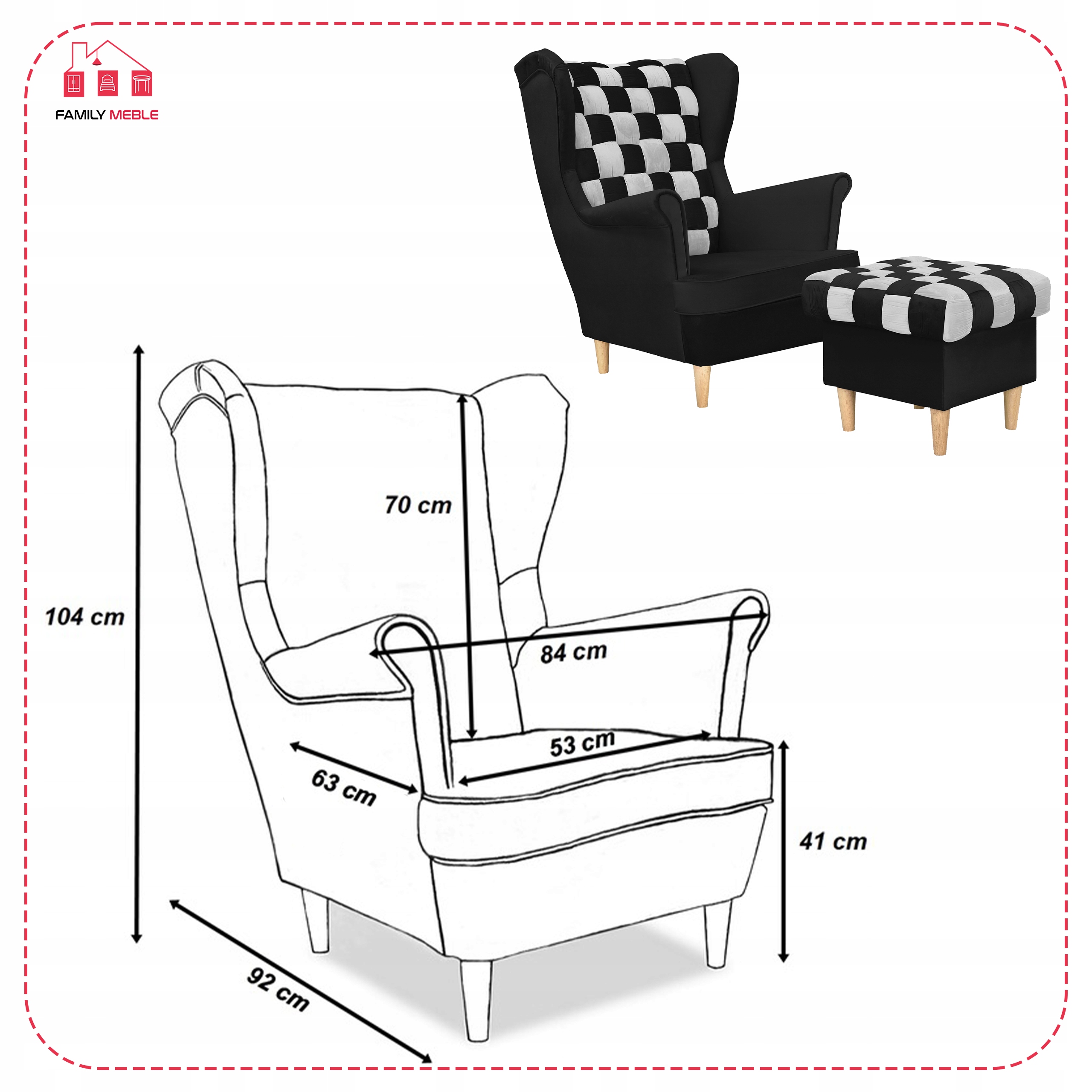 Swoją niezwykłą nazwę fotel Uszak zawdzięcza charakterystycznym „uszom”, czyli połączonym z podłokietnikami bokom oparcia. Choć powstał setki lat temu (prawdopodobnie na dworze Ludwika XIV), wciąż jest popularny. Dzięki łagodnym liniom i klasycznemu kształtowi prezentuje się bardzo elegancko. Obicie w odcieniu czarnego (ROYAL 31) sprawia, że bez trudu ożywi każde wnętrza. Do tego jest wyjątkowo wygodny. Zapadnij się w jego siedzisko, połóż nogi na pufie znajdującej się w zestawie i po prostu rozkoszuj się chwilą!