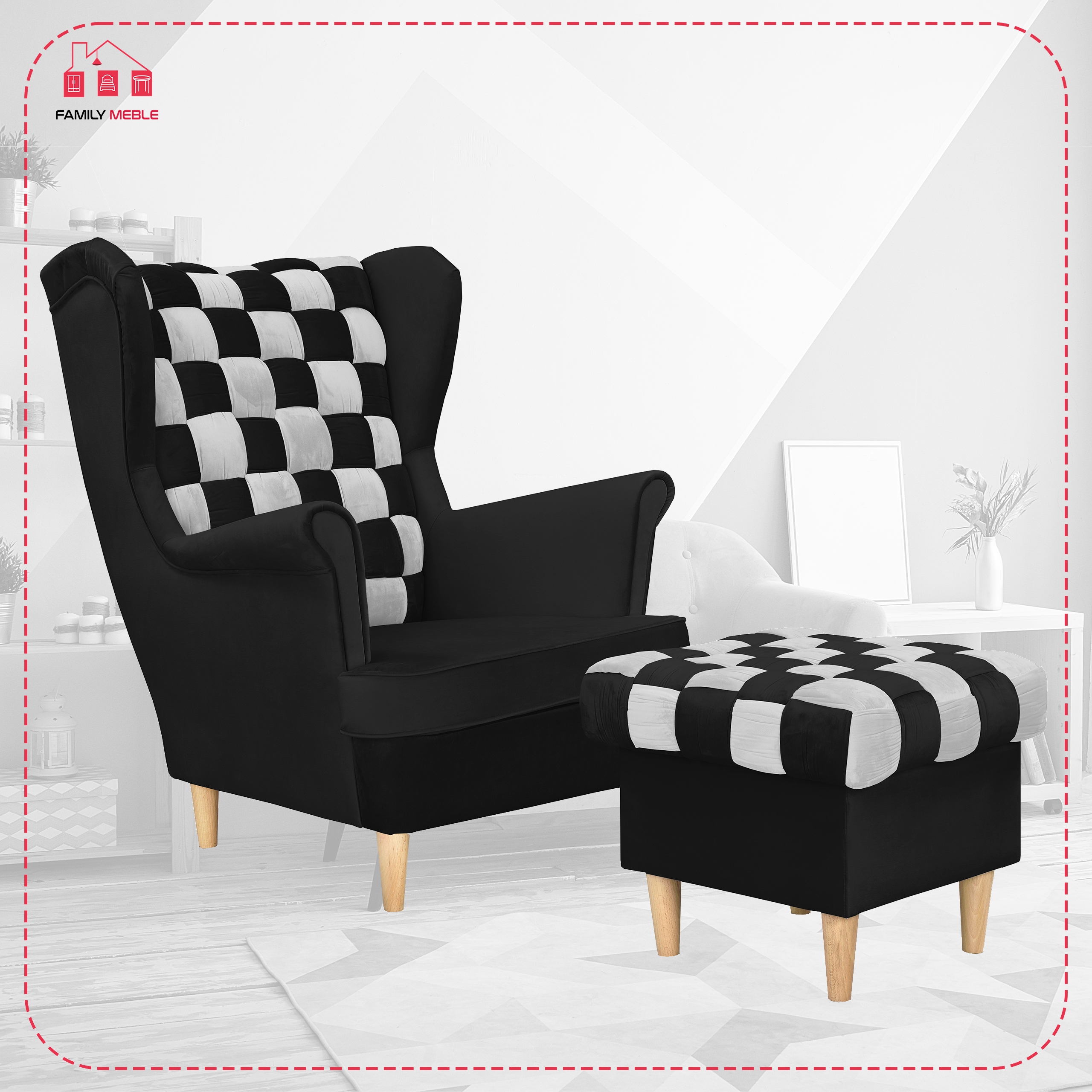 Fotel uszak z podnóżkiem skandynawski Carol Duo Family Meble