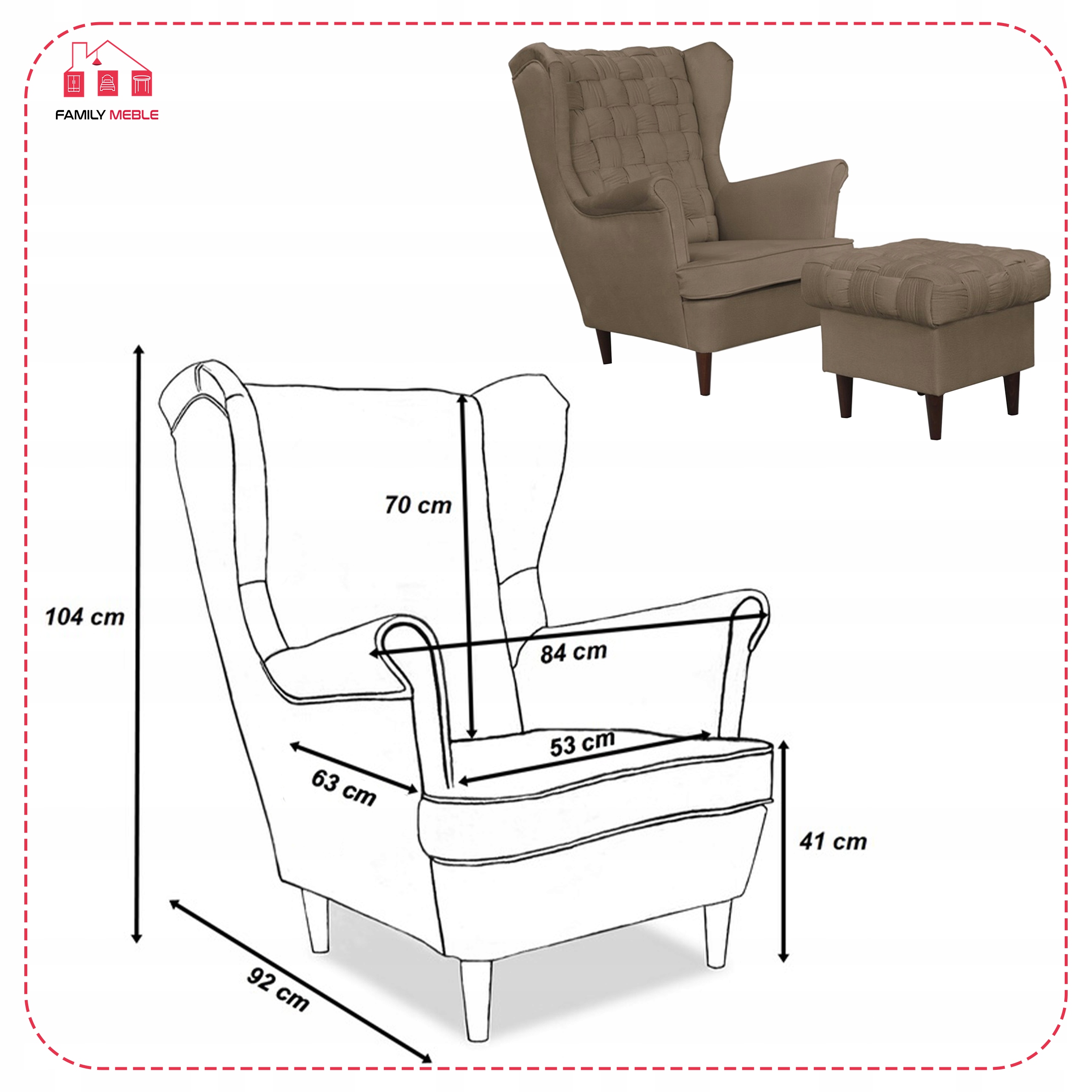 - W zestawie podnóżek widoczny na zdjęciu