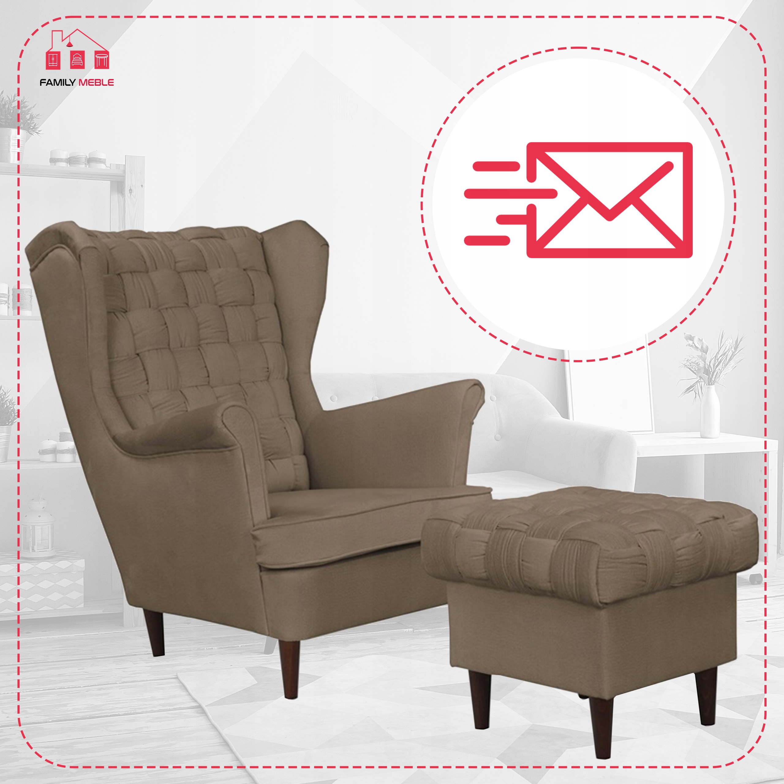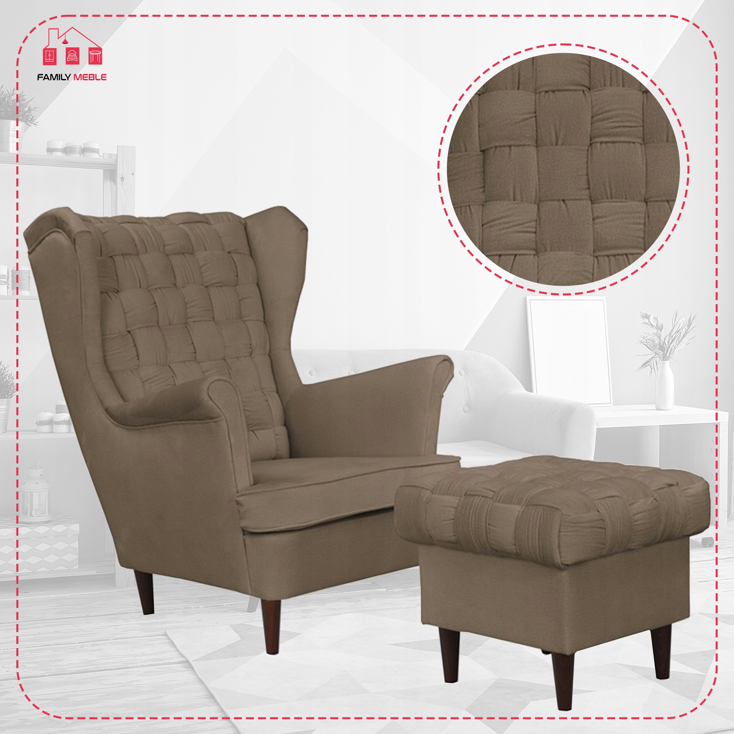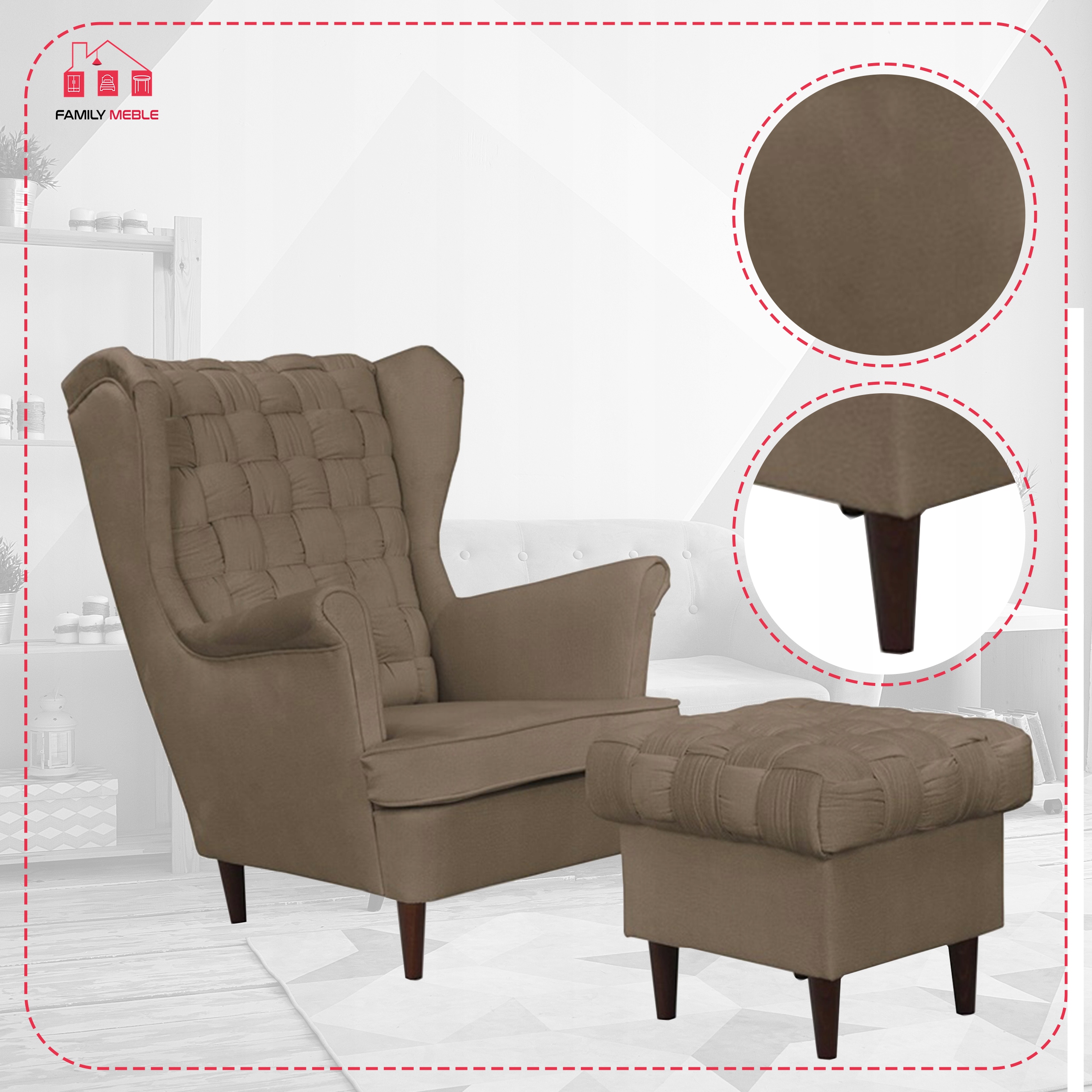 Fotel uszak z podnóżkiem skandynawski Carol Family Meble