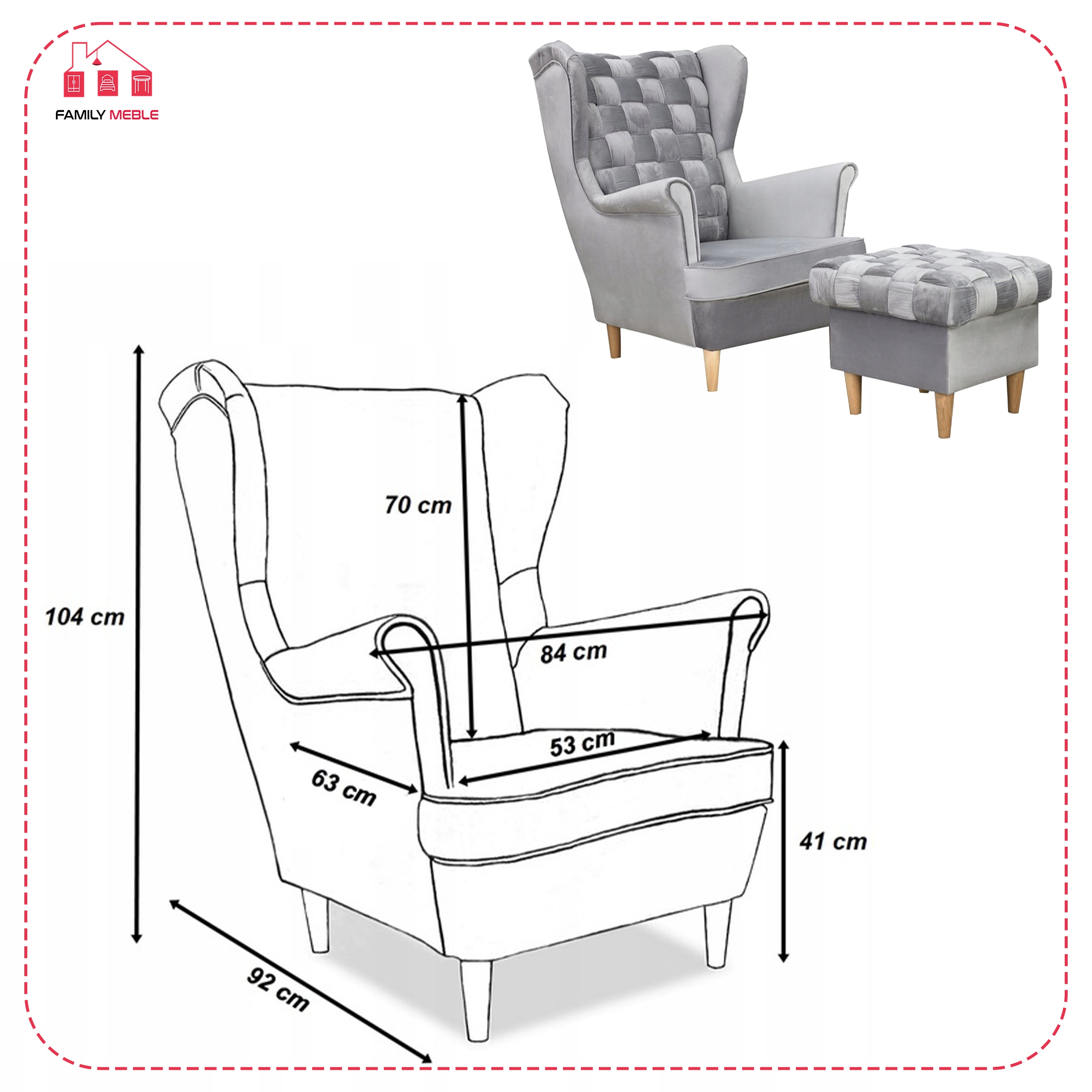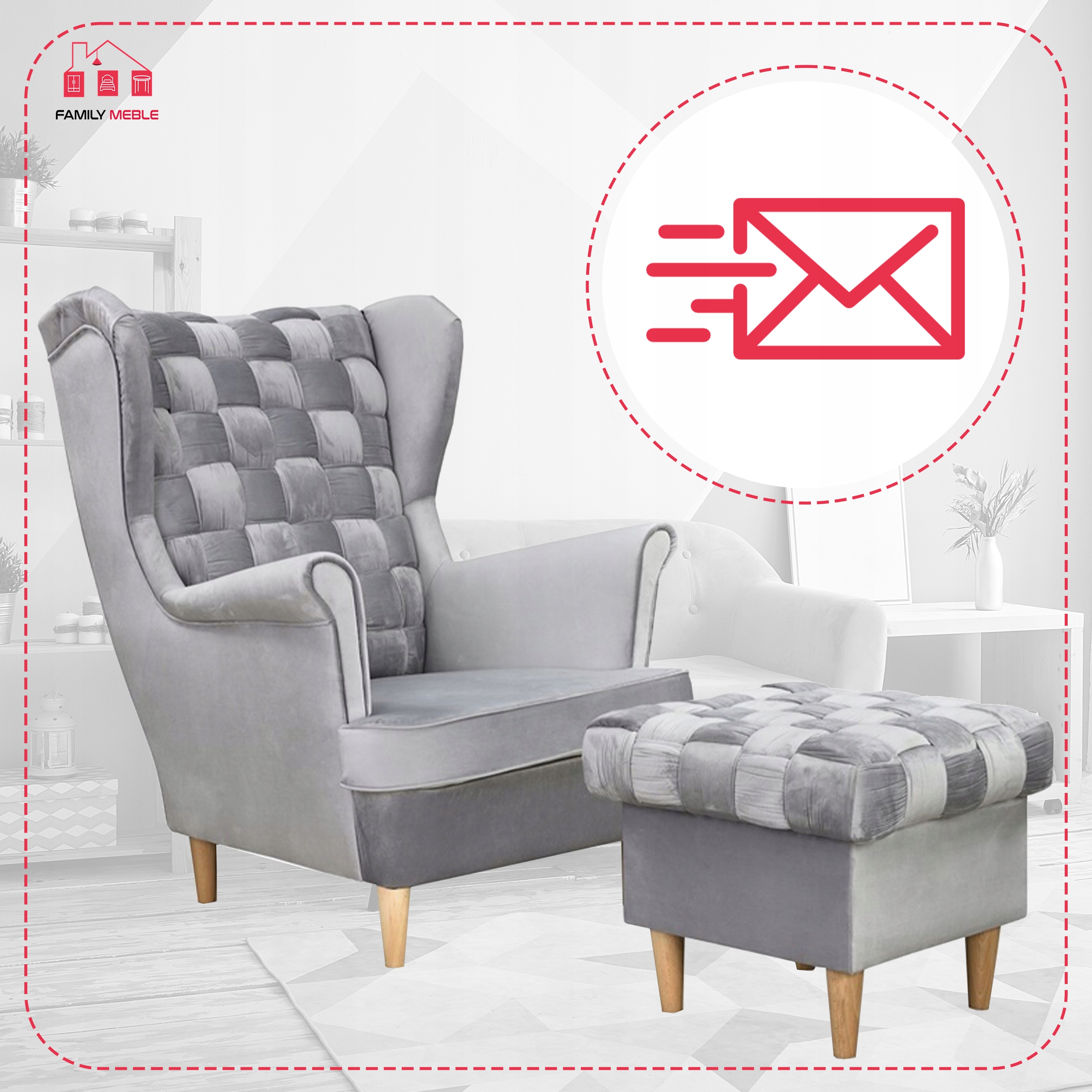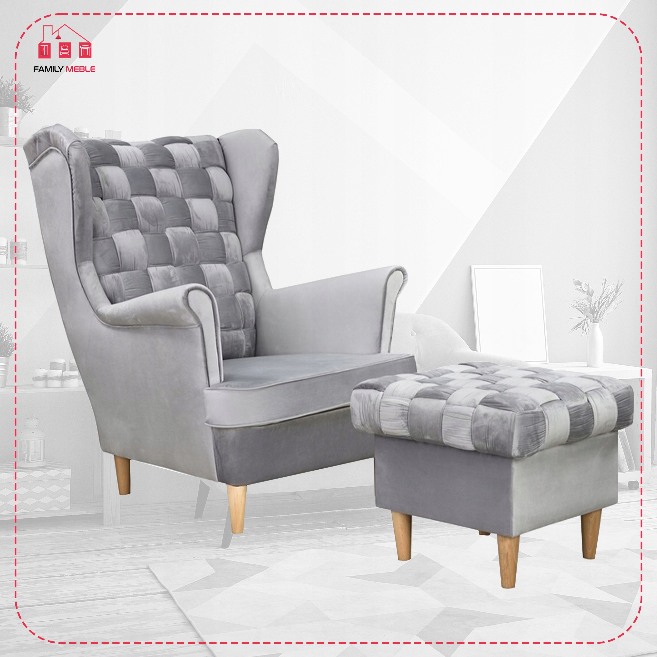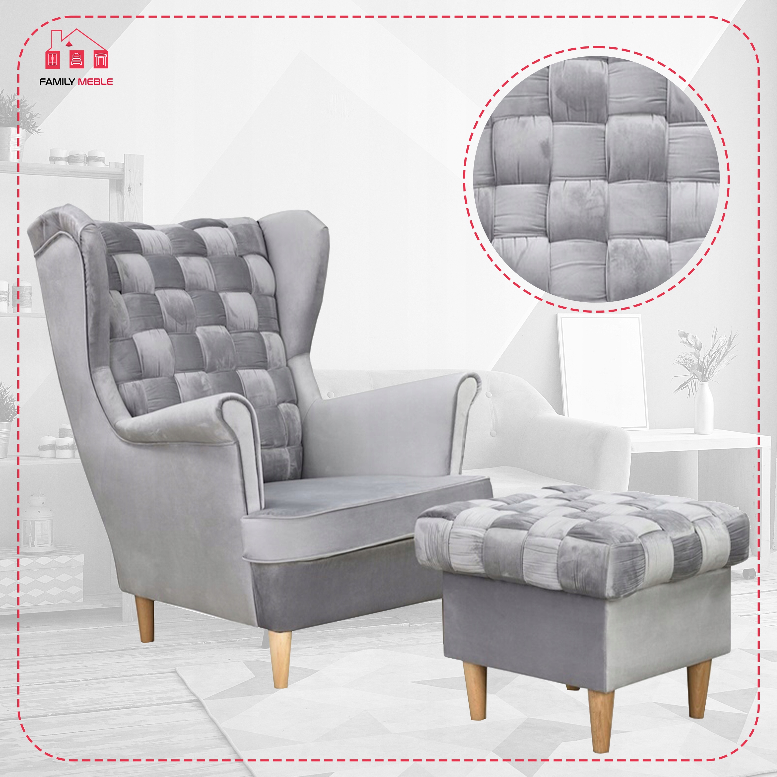 Fotel uszak z podnóżkiem skandynawski Carol Family Meble