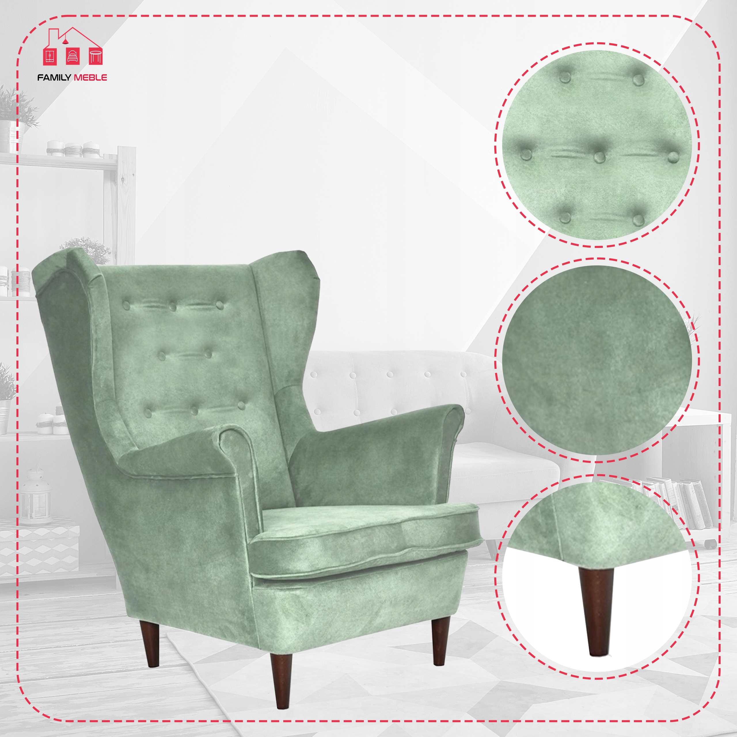 Jako producent mebli tapicerowanych, który specjalizuje się w fotelach typu Uszak, dajemy naszym klientom szerokie możliwości personalizacji (od koloru nóżek po rodzaj tkaniny) bez zmiany ceny.