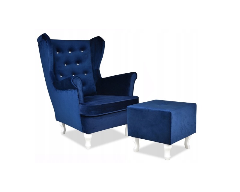 Fotel uszak Diana z podnóżkiem skandynawski Family Meble kobaltowy