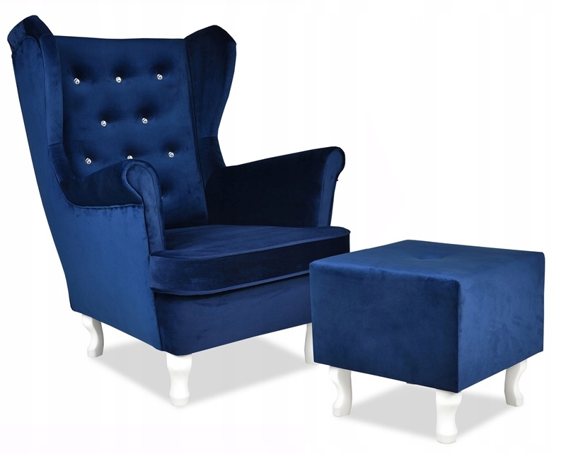 Napisz pierwszą opinię o „Fotel uszak Diana z podnóżkiem skandynawski Family Meble kobaltowy”