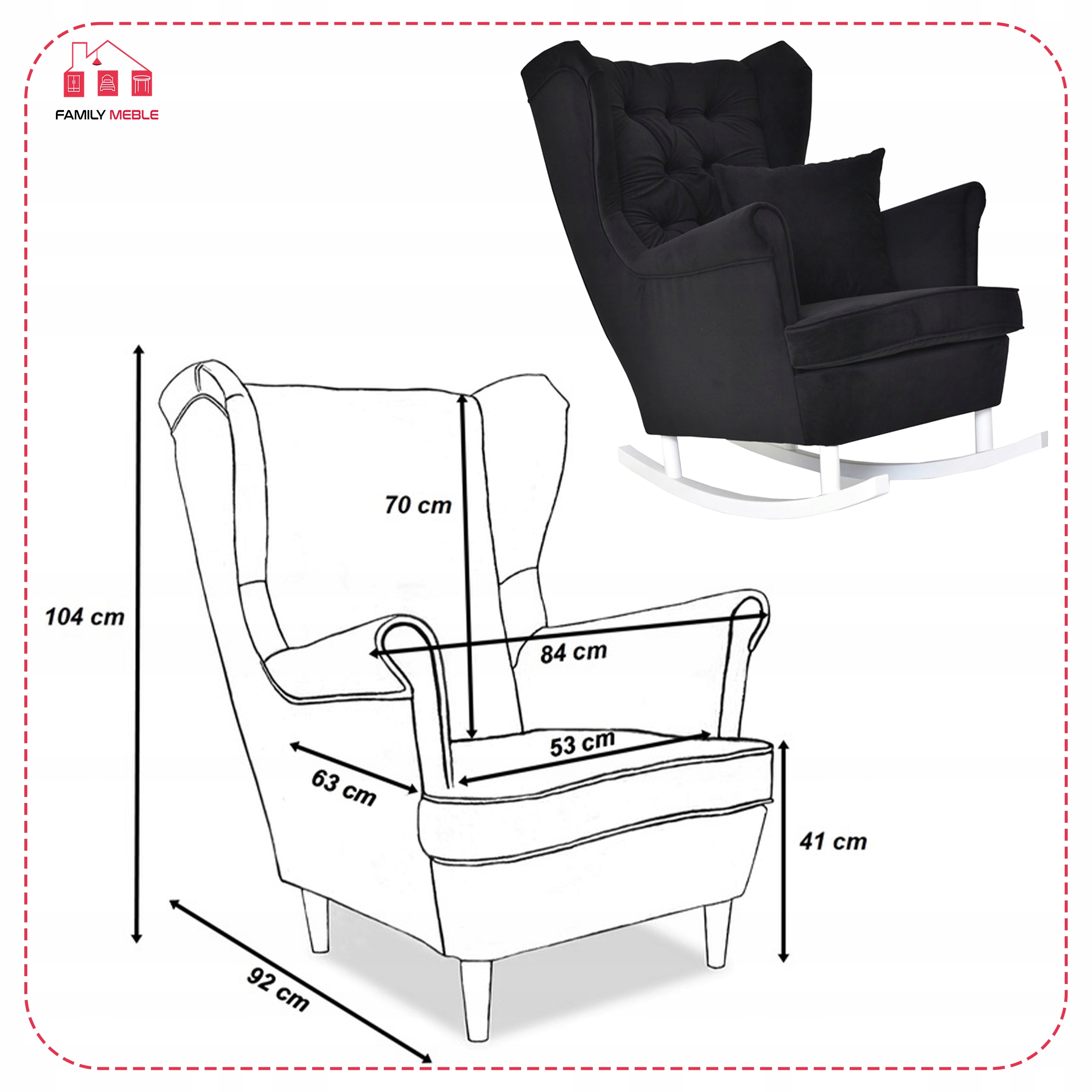 - wysokość siedziska: 41 cm