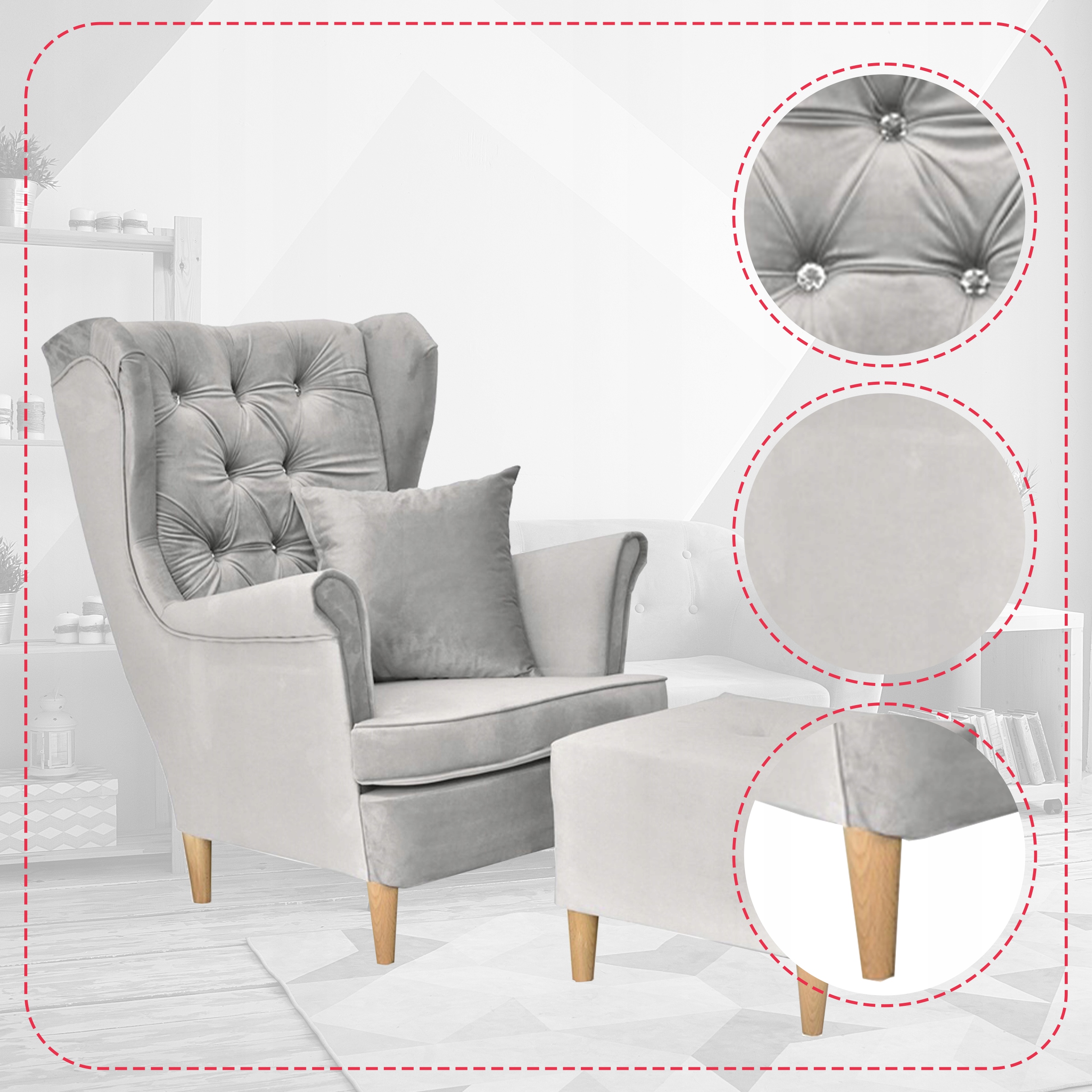 ✅ Możliwość personalizacji – zamawiając fotel bezpośrednio u producenta, możesz wybrać zarówno kolor jego nóżek, tkaninę obicia, jak i sposób zdobienia