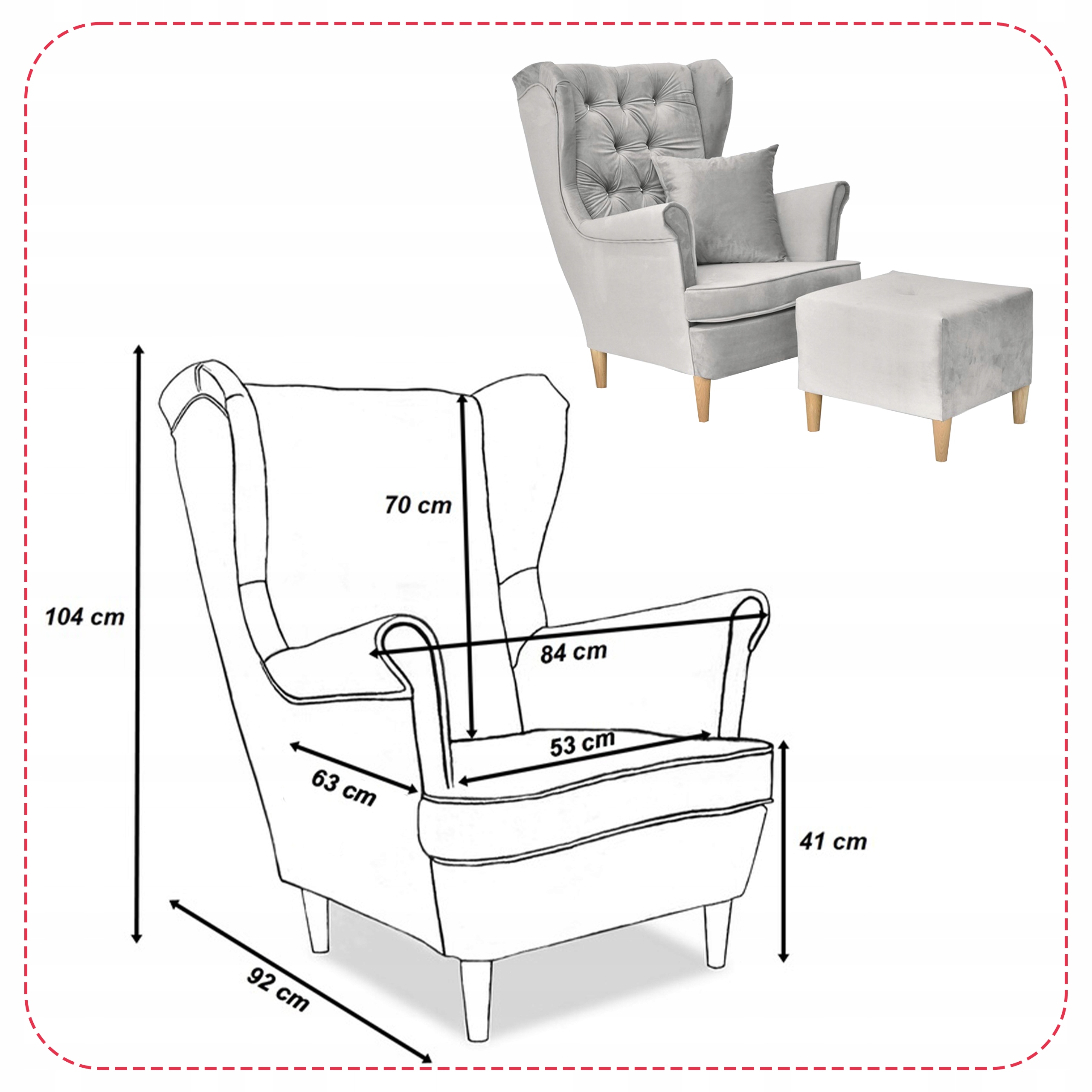 - W zestawie podnóżek widoczny na zdjęciu