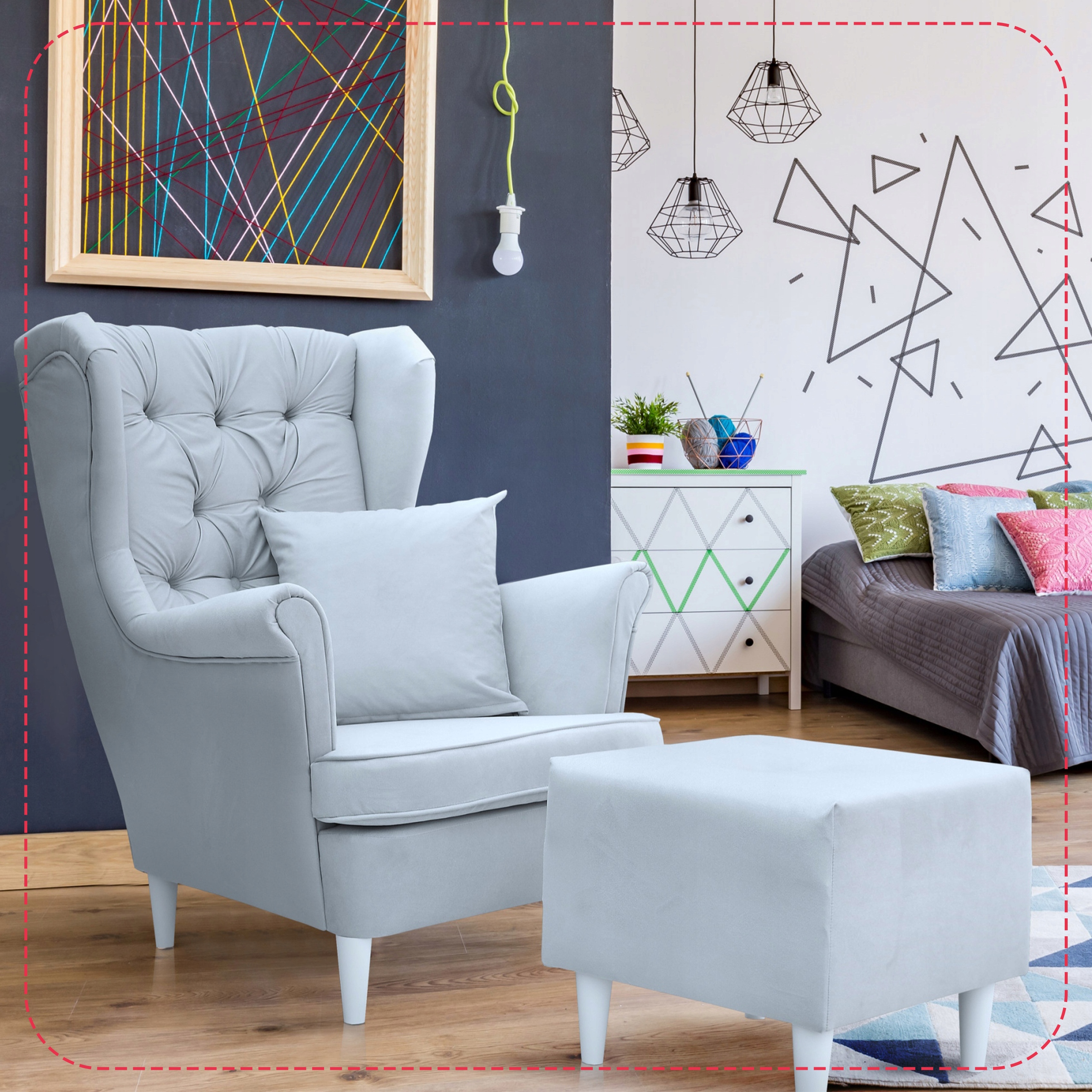 Fotel uszak z podnóżkiem skandynawski Gaja Family Meble