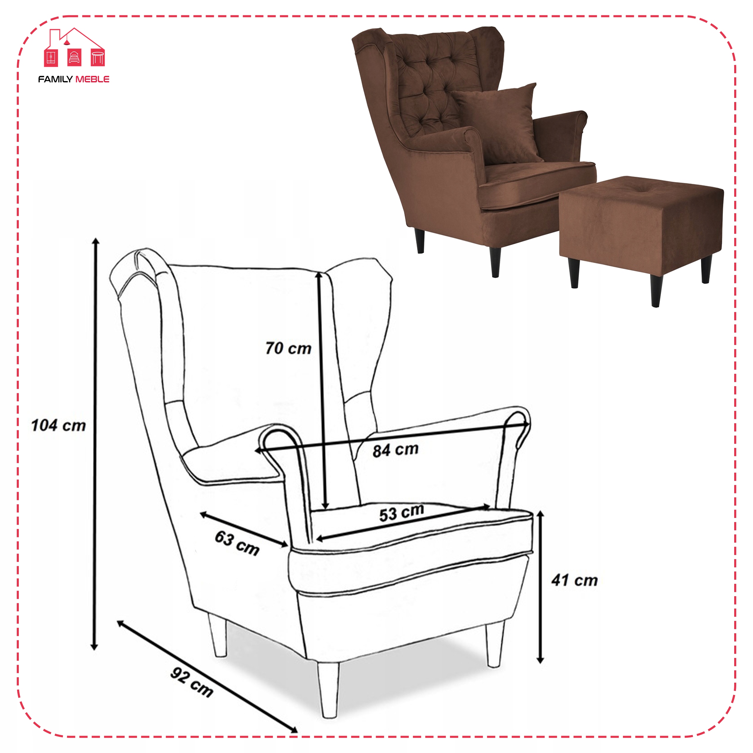 Swoją niezwykłą nazwę fotel Uszak zawdzięcza charakterystycznym „uszom”, czyli połączonym z podłokietnikami bokom oparcia. Choć powstał setki lat temu (prawdopodobnie na dworze Ludwika XIV), wciąż jest popularny. Dzięki łagodnym liniom i klasycznemu kształtowi prezentuje się bardzo elegancko. Obicie w odcieniu brązowego (AMORE 30) sprawia, że bez trudu ożywi każde wnętrza. Do tego jest wyjątkowo wygodny. Zapadnij się w jego siedzisko, połóż nogi na pufie znajdującej się w zestawie i po prostu rozkoszuj się chwilą!