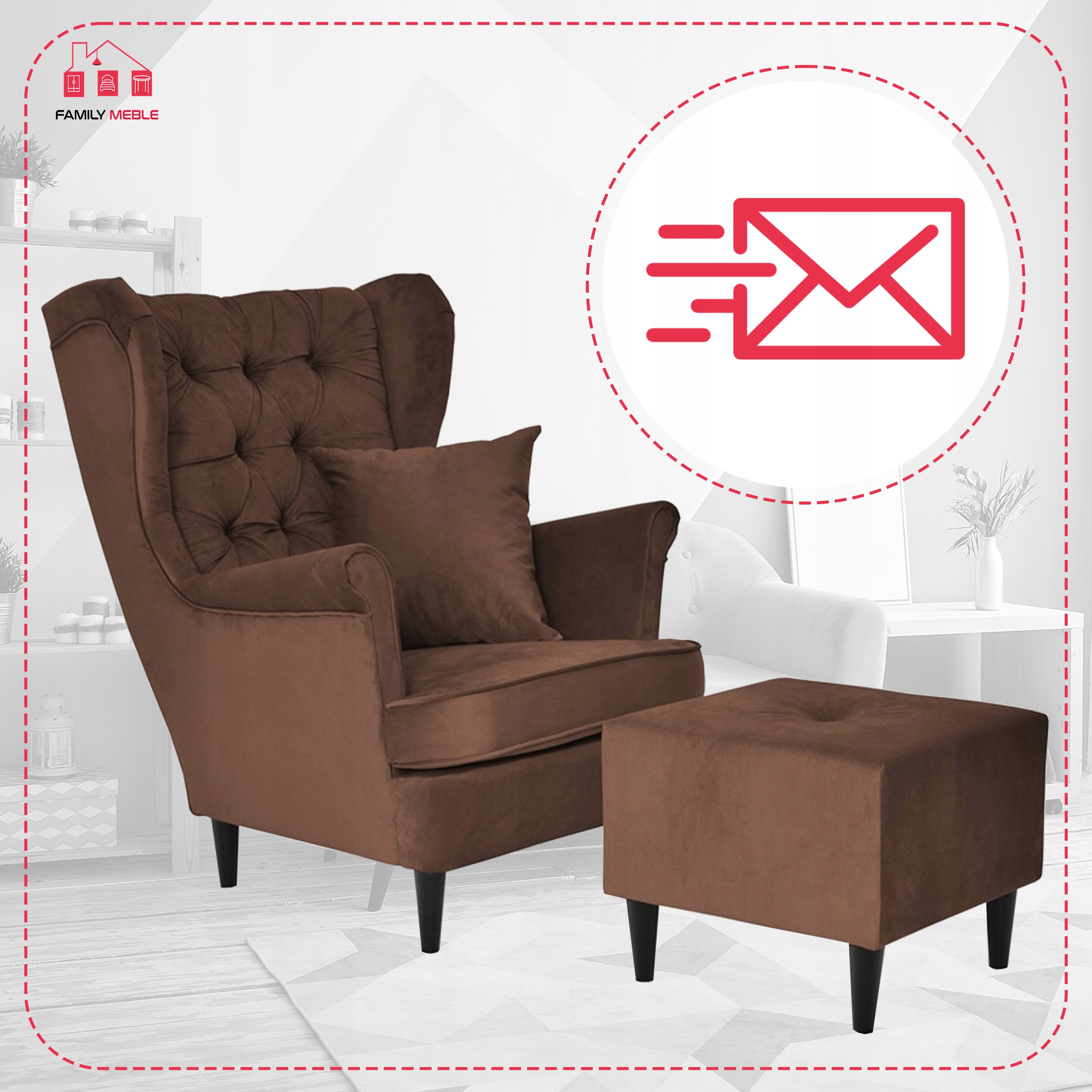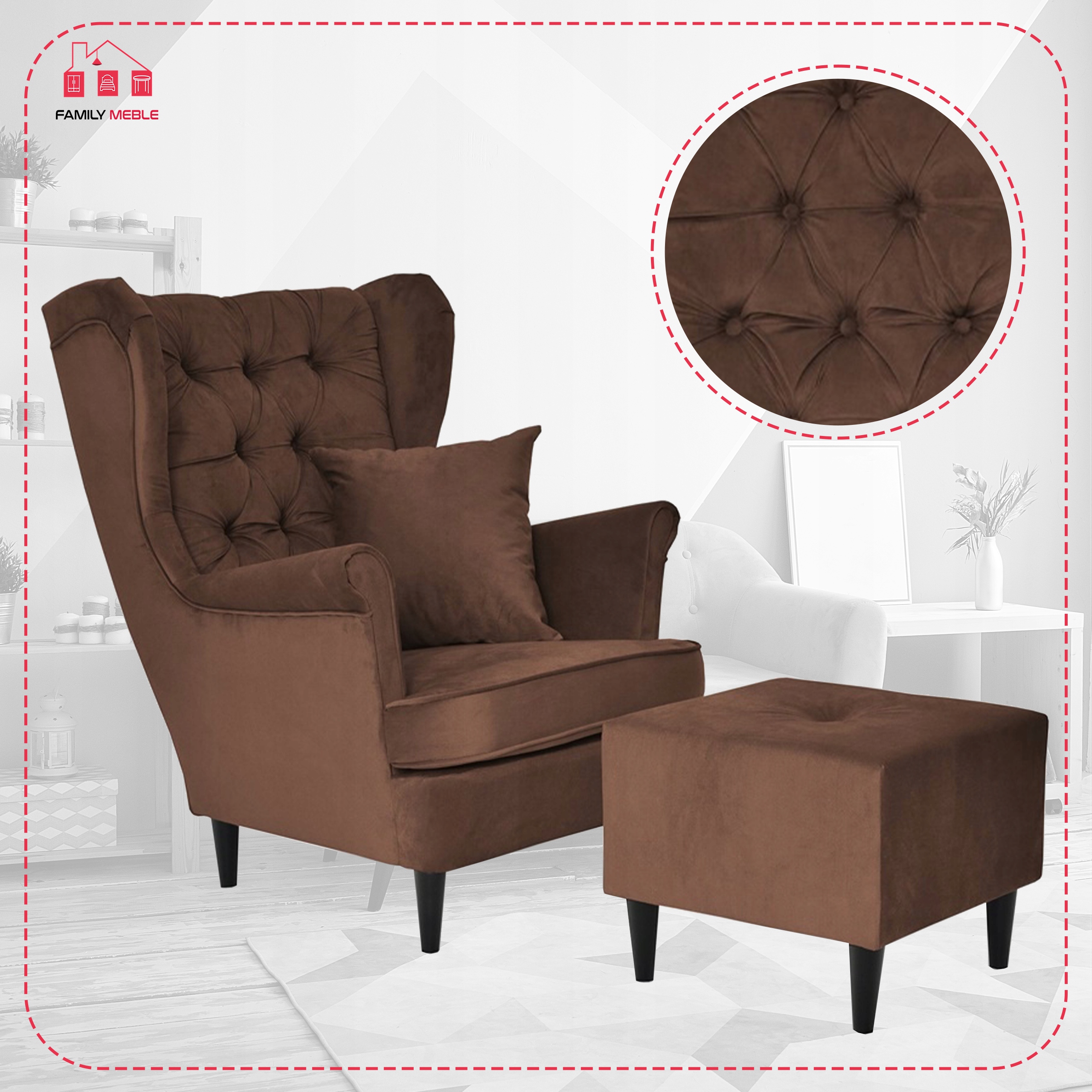 Fotel uszak z podnóżkiem skandynawski Gaja Family Meble