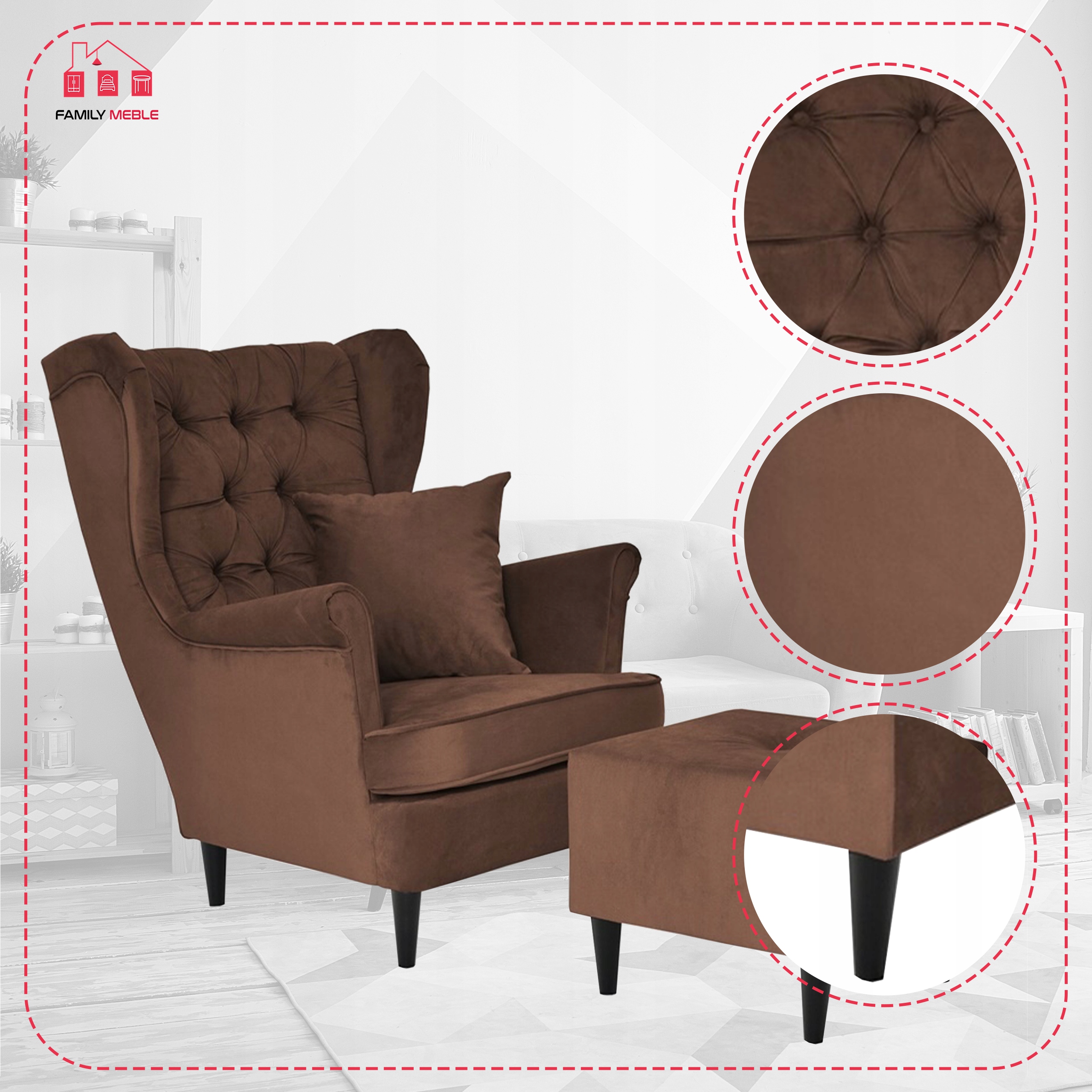 Jako producent mebli tapicerowanych, który specjalizuje się w fotelach typu Uszak, dajemy naszym klientom szerokie możliwości personalizacji (od koloru nóżek po rodzaj tkaniny) bez zmiany ceny.