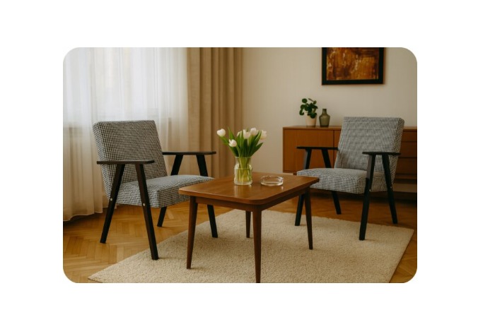✅ Design inspirowany PRL – klasyczny, rozpoznawalny kształt nawiązuje do mebli z epoki, które wracają do łask jako stylowe elementy wnętrz retro, vintage czy loftowych.