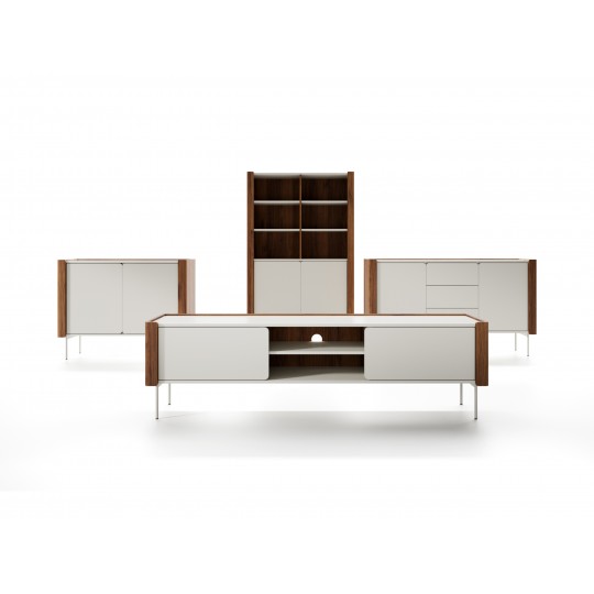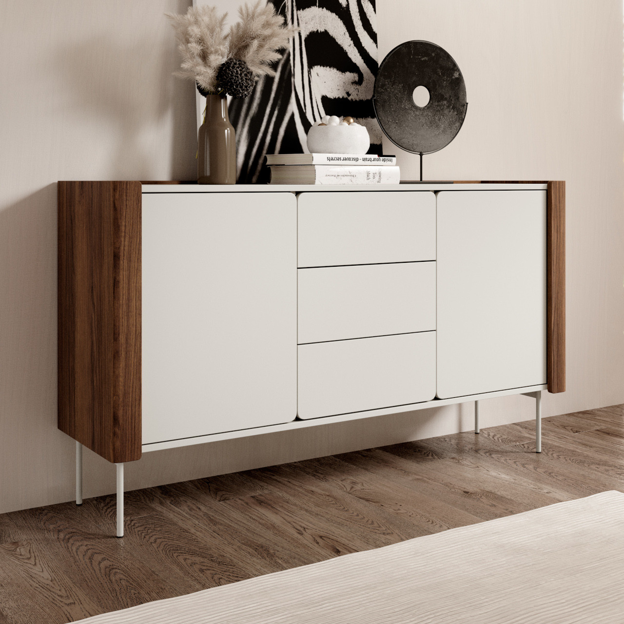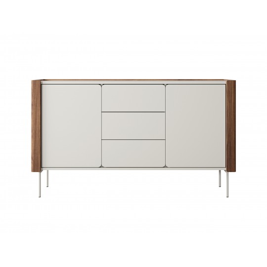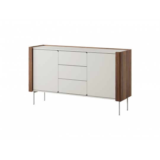 Komoda WRAP to połączenie elegancji i funkcjonalności, które doskonale wpisuje się w nowoczesne trendy wnętrzarskie. Jej unikalny design łączy ciepły odcień kaszmiru z głębokim, naturalnym orzechem, co tworzy harmonijną całość, idealnie wpasowującą się w różnorodne aranżacje. Komoda została zaprojektowana z myślą o wygodzie użytkowania – przestronne szuflady oraz półki zapewniają odpowiednią organizację przestrzeni, umożliwiając łatwe przechowywanie przedmiotów codziennego użytku. Wykonana z wysokiej jakości materiałów, charakteryzuje się starannym wykończeniem, które zapewnia jej trwałość i odporność na upływ czasu. Subtelne uchwyty oraz precyzyjnie wykończone krawędzie podkreślają elegancki styl mebla, czyniąc z niego nie tylko funkcjonalny element wyposażenia, ale również atrakcyjną dekorację wnętrza.
