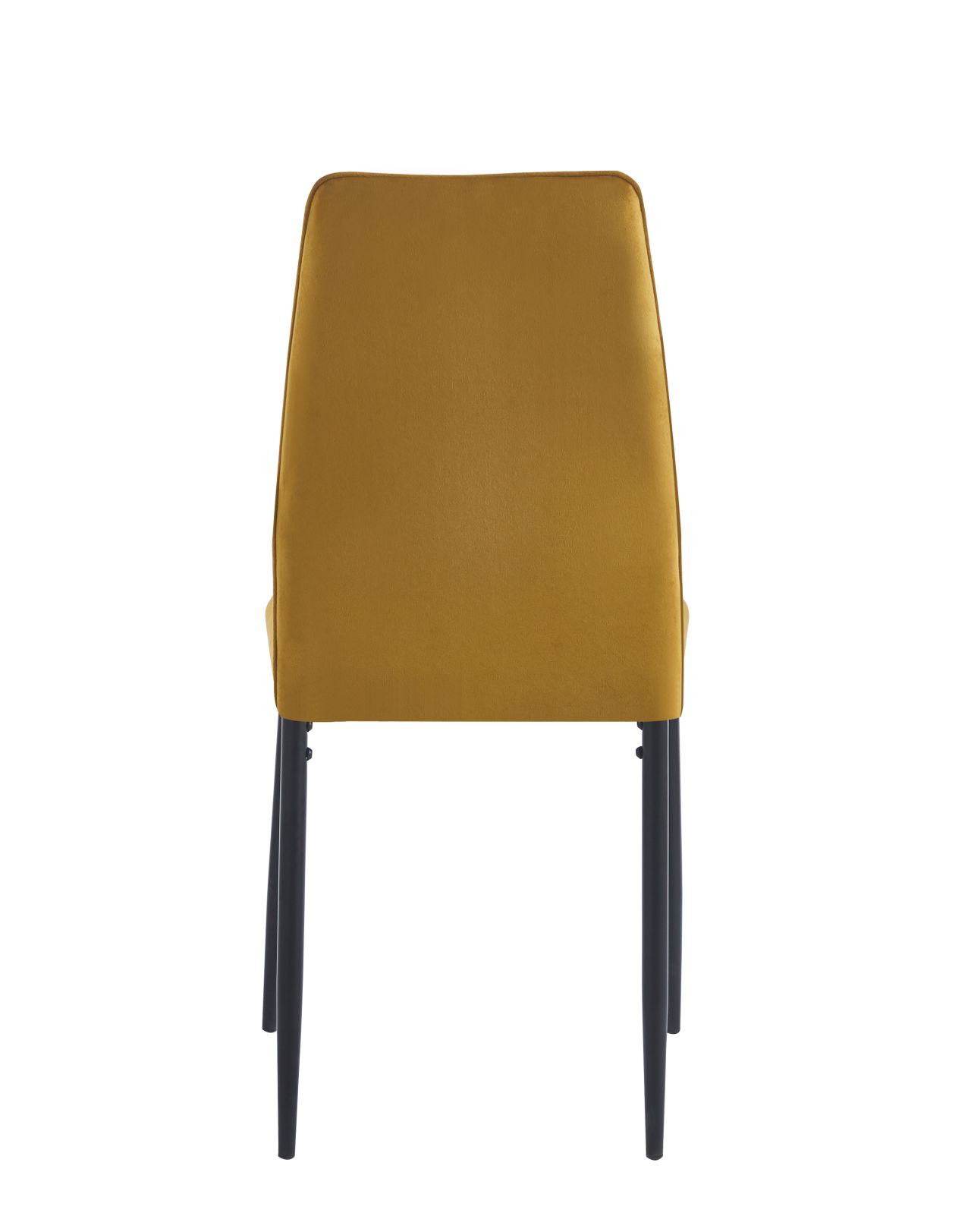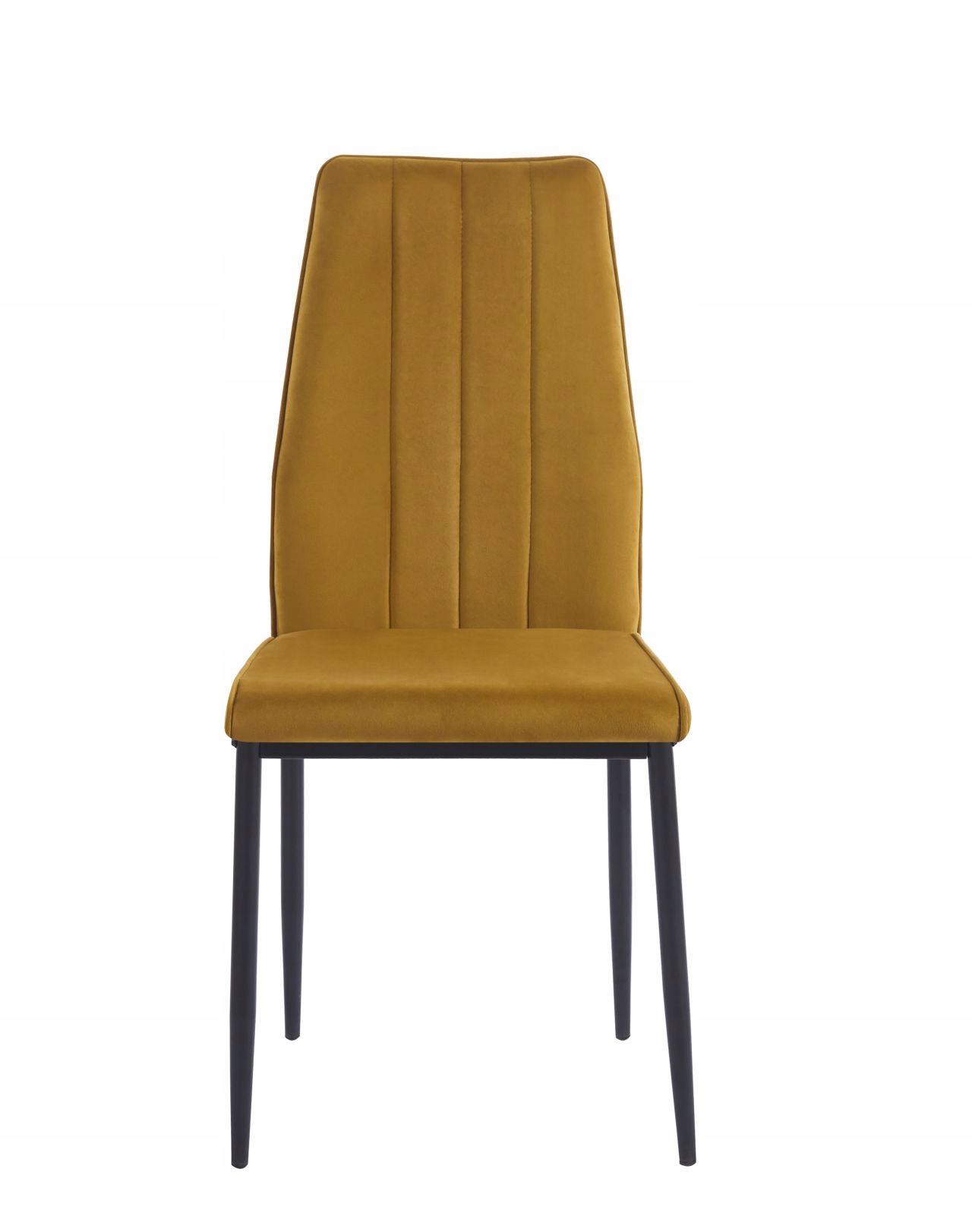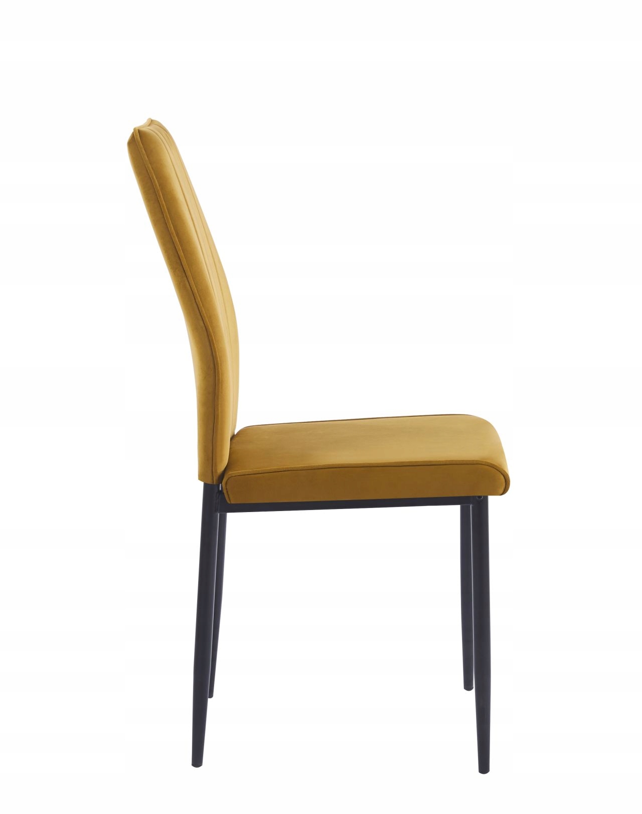 Wygodne siedzisko tapicerowane jest przyjemnym w dotyku welurem o odcieniach curry, który dodaje wnętrzu niepowtarzalnego charakteru. Solidna konstrukcja oparta na metalowych nogach malowanych proszkowo, gwarantuje trwałość i stabilność krzesła.