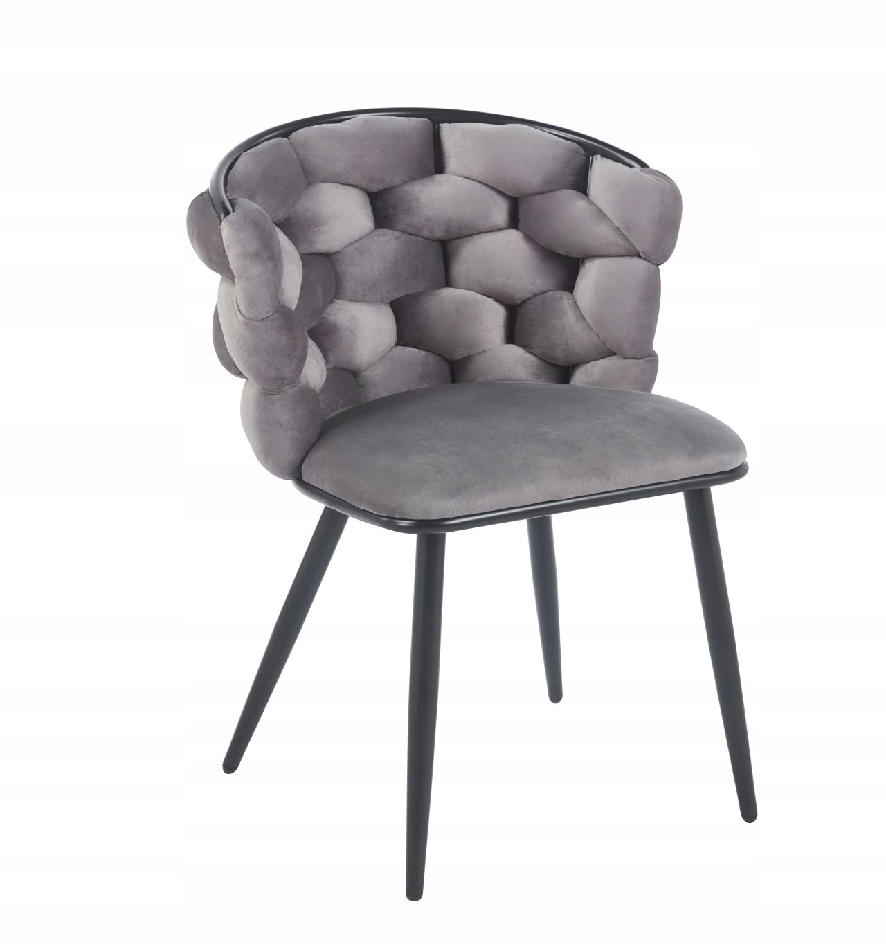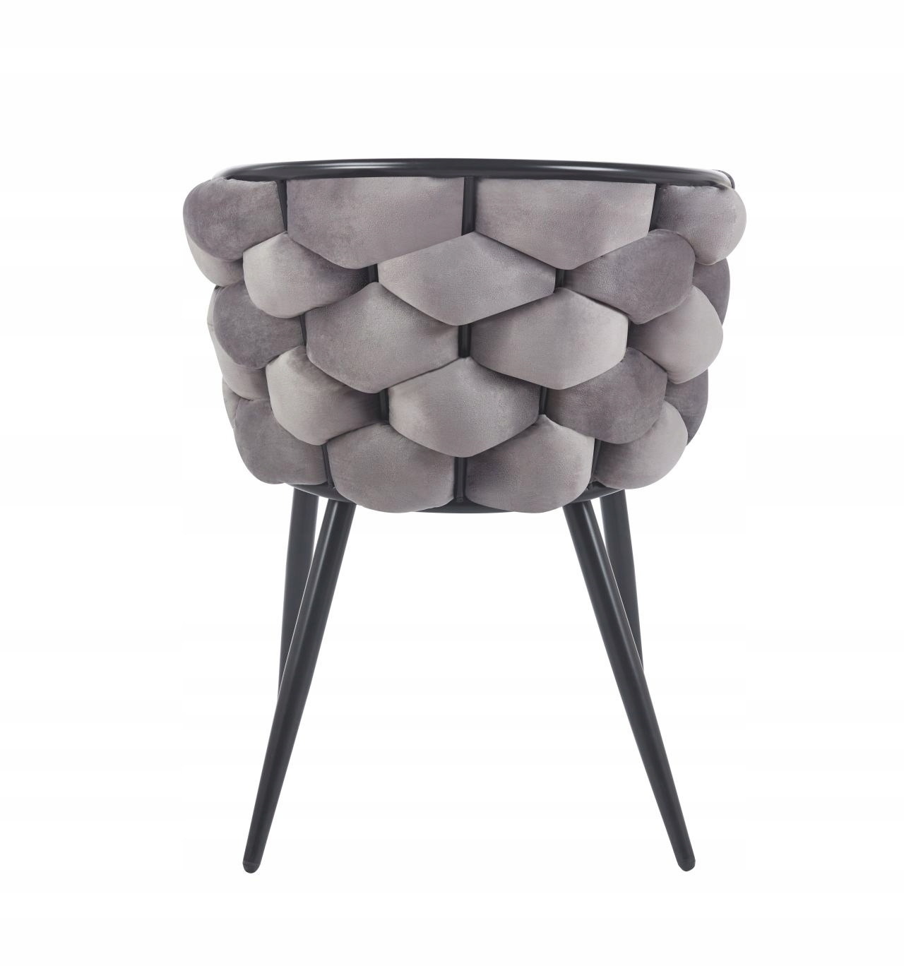 To wyjątkowe krzesło łączy w sobie elegancję, nowoczesność i komfort. Jego charakterystyczną cechą jest oparcie i siedzisko wykonane z miękkiego, przyjemnego w dotyku weluru, ułożonego w efektowny, ręcznie przeplatany wzór. Ten detal nie tylko przyciąga wzrok, ale także zapewnia doskonałą cyrkulację powietrza i elastyczne dopasowanie do kształtu ciała.