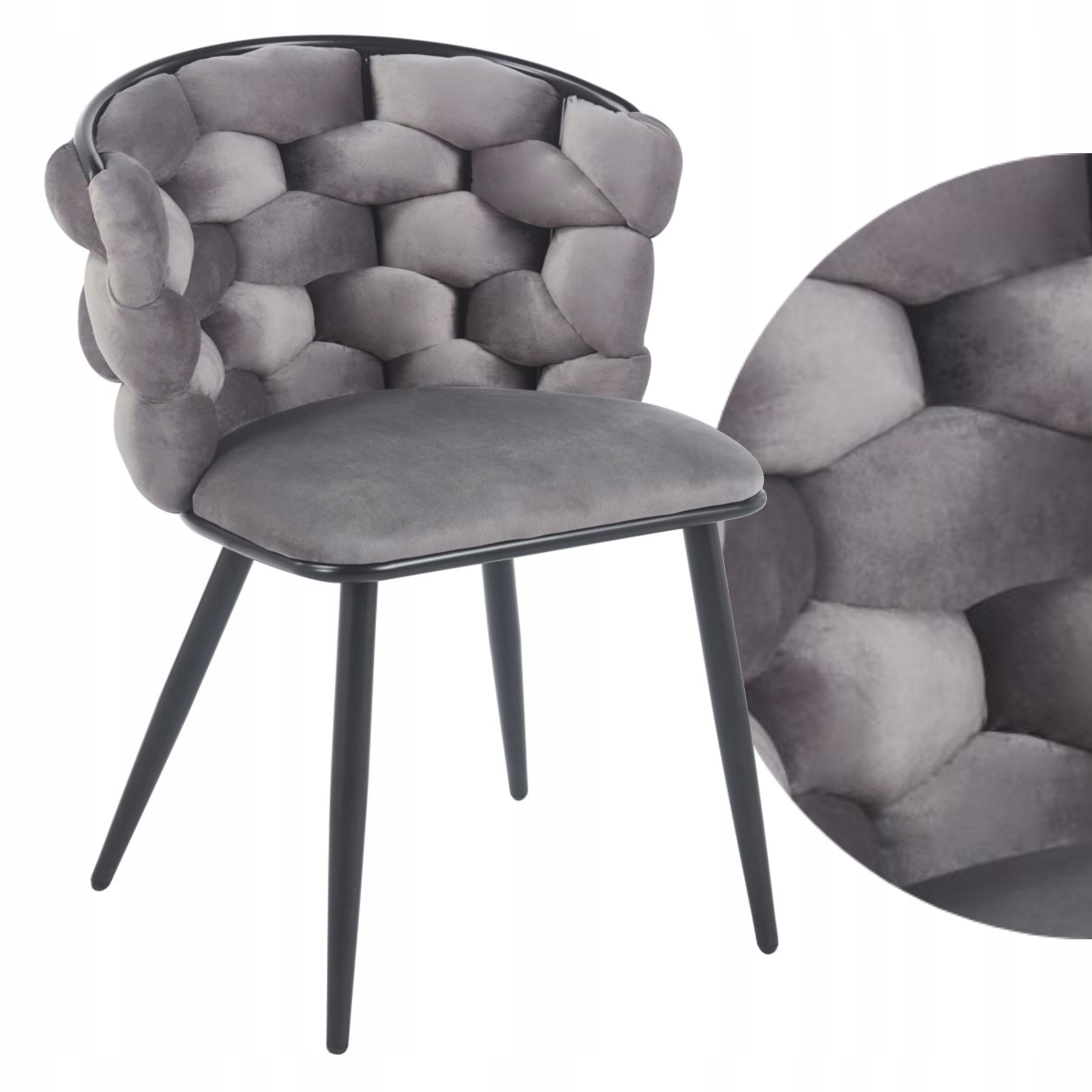 Szare Krzesło PRZEPLATANE Welurowe Proste Wygodne Furnitex do SALONU
