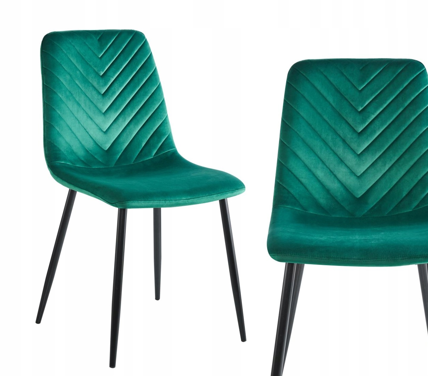 Wygodne siedzisko tapicerowane jest przyjemnym w dotyku welurem o odcieniach zieleni, który dodaje wnętrzu niepowtarzalnego charakteru. Solidna konstrukcja oparta na metalowych nogach malowanych proszkowo, gwarantuje trwałość i stabilność krzesła.