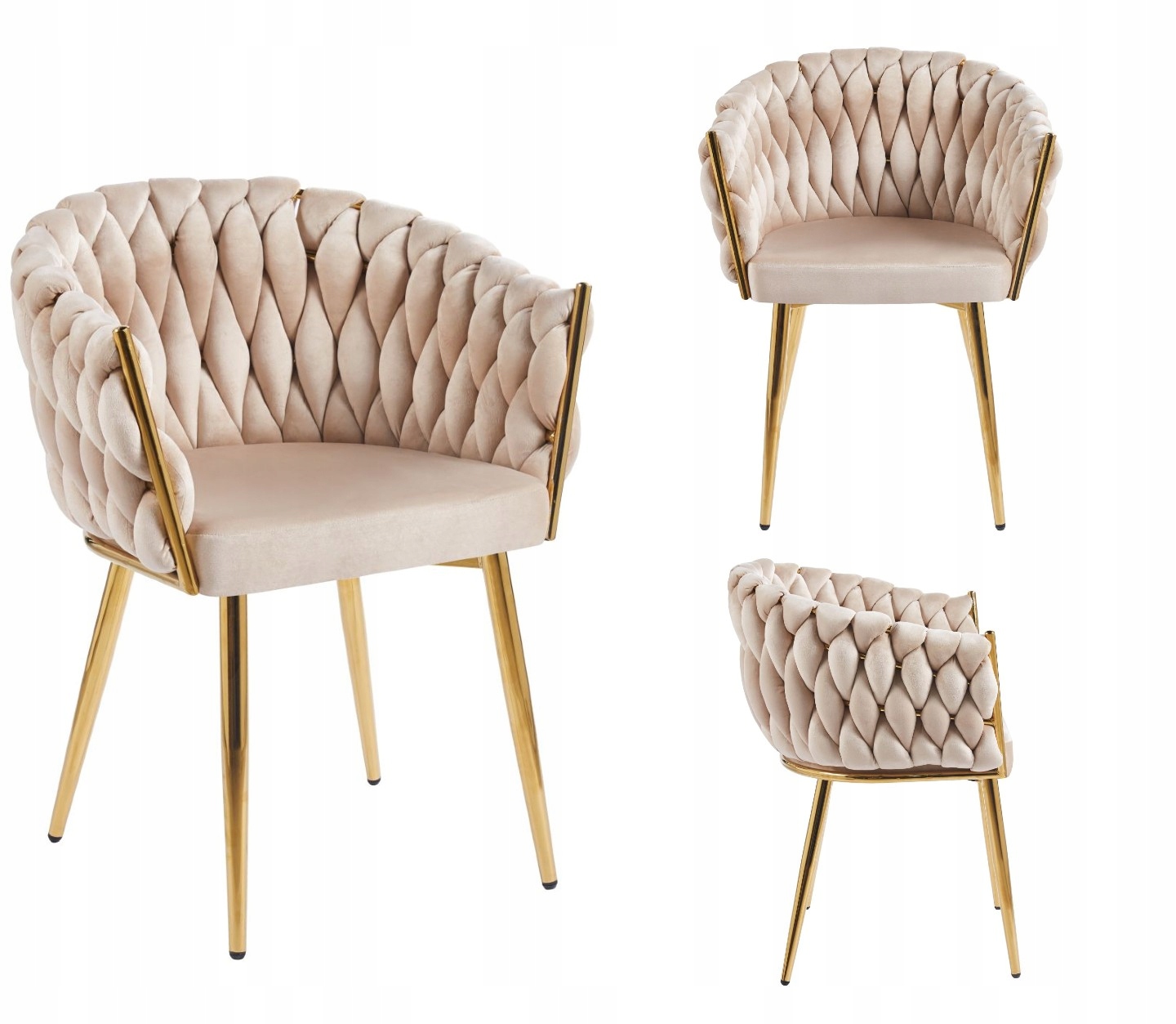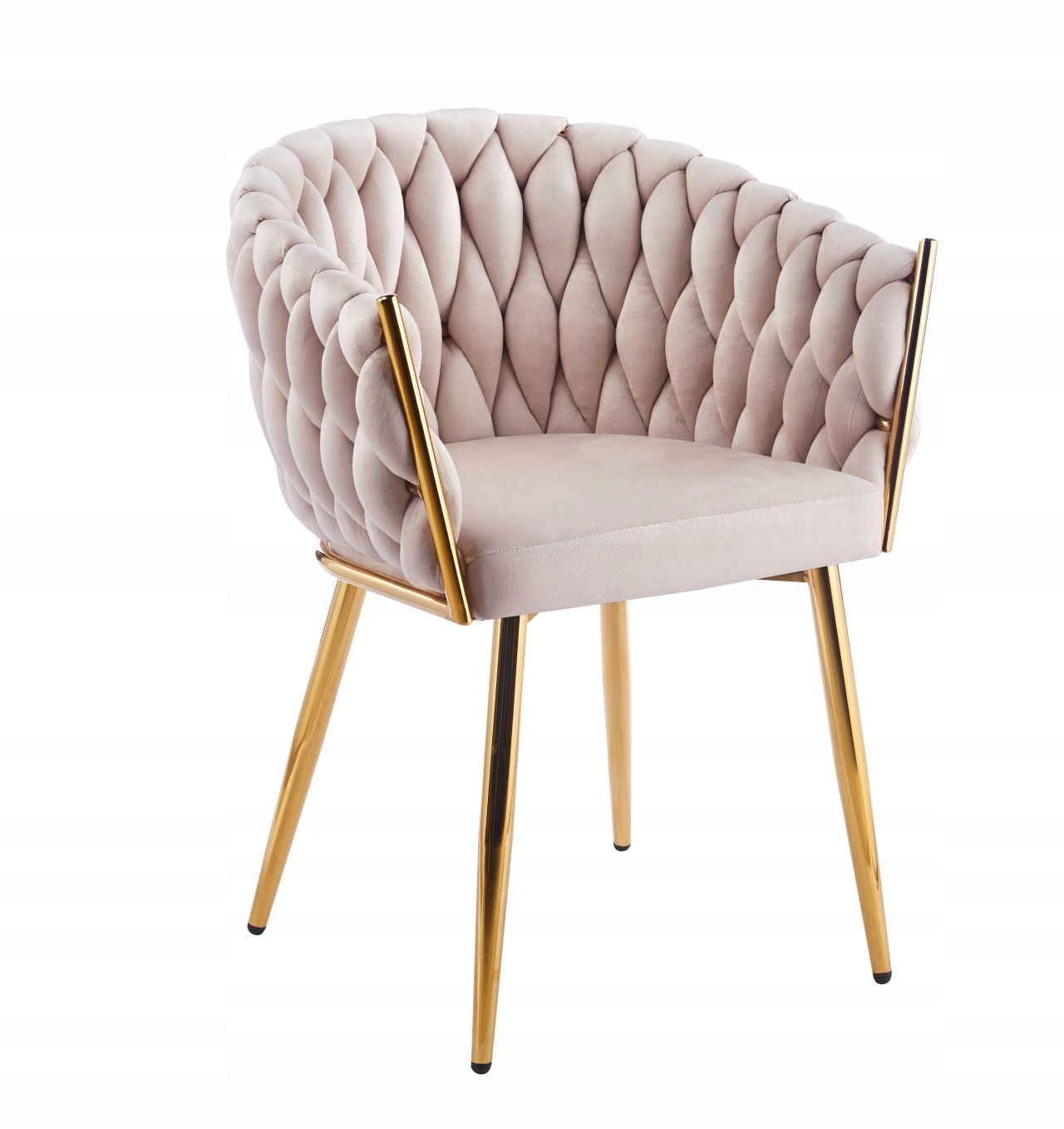 Beżowo ZŁOTE Krzesło VELVET Glamour do GABINETU SALONU Furnitex
