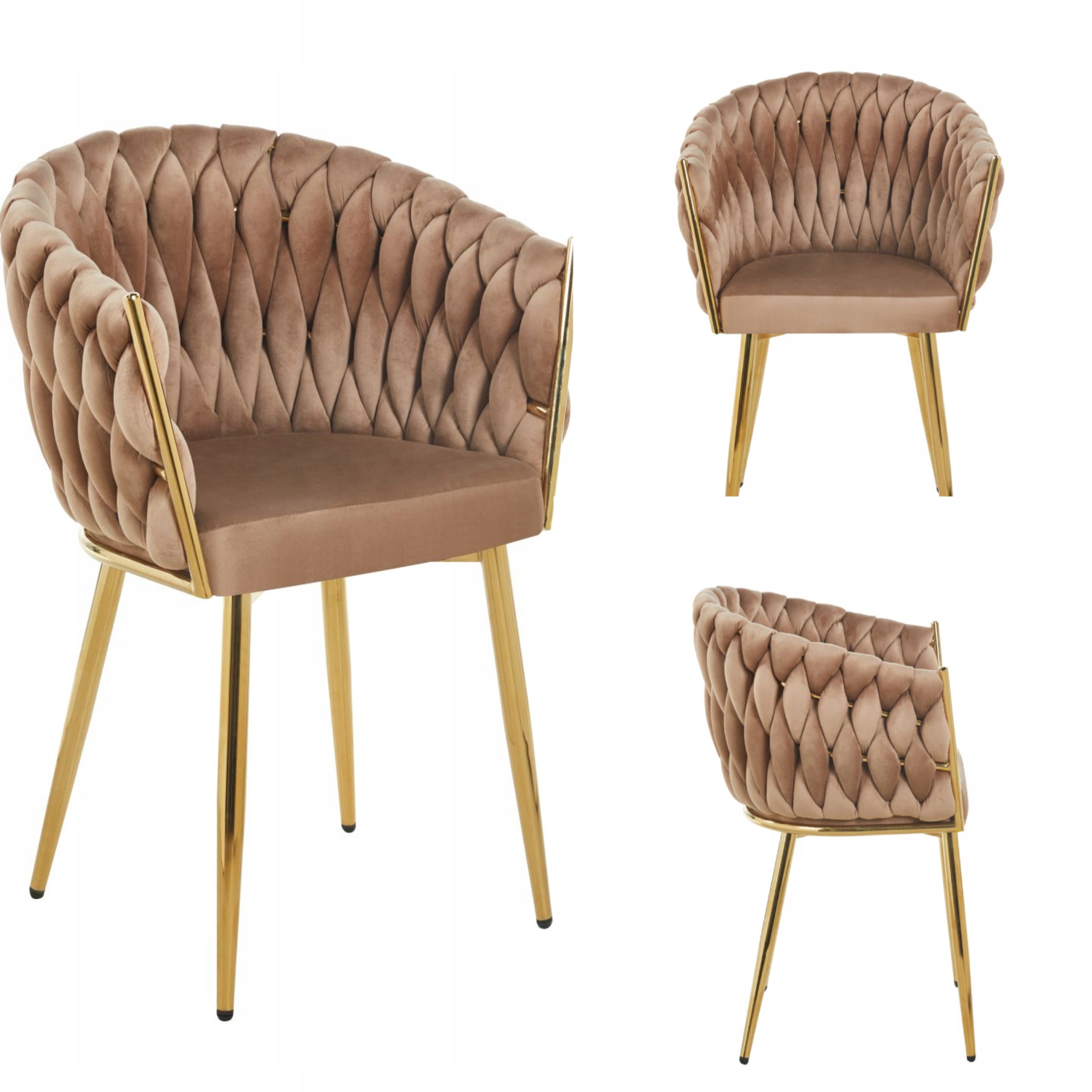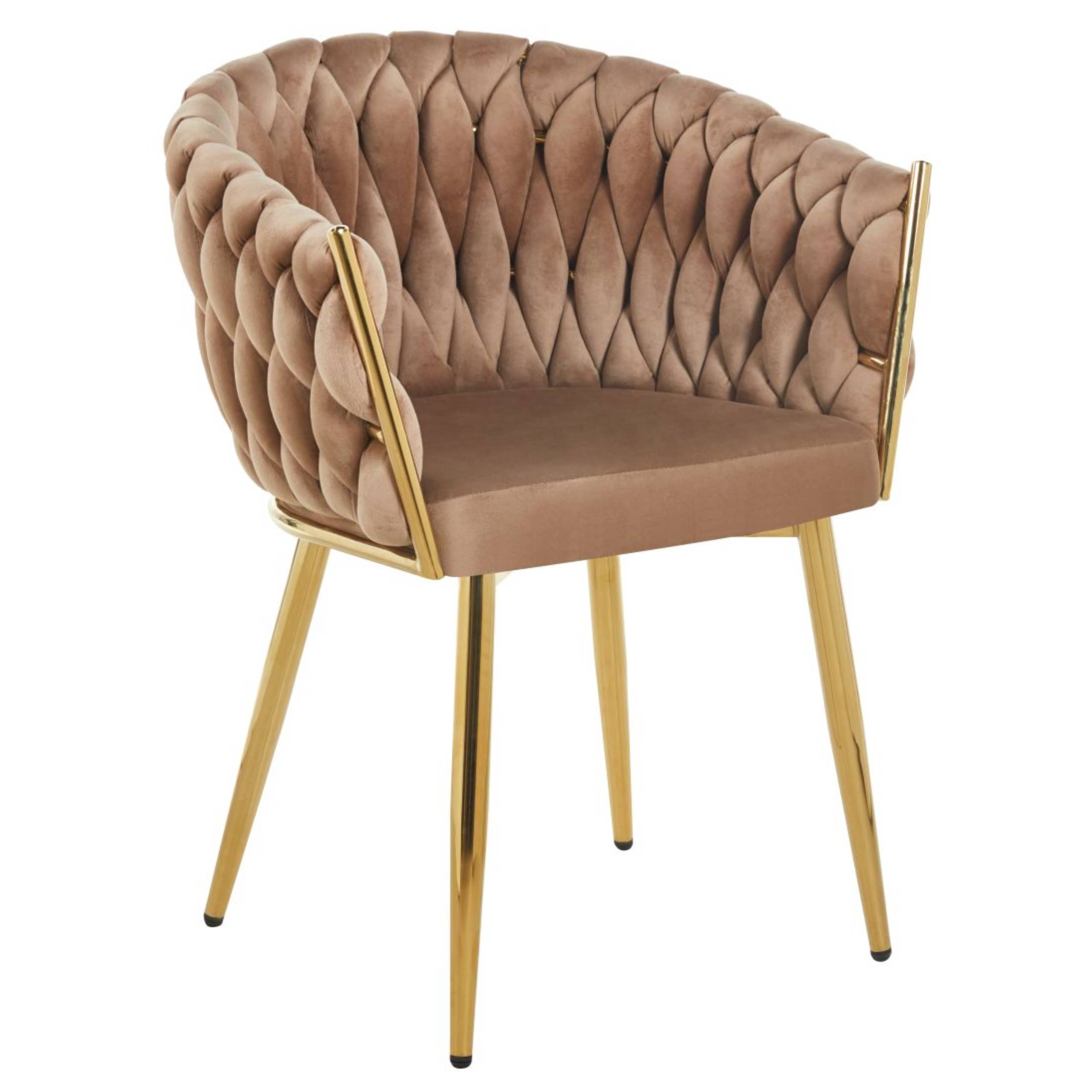 Krzesło PRZEPLATANE CAPPUCCINO welurowe na ZŁOTYM STELAŻU Furnitex Glamour