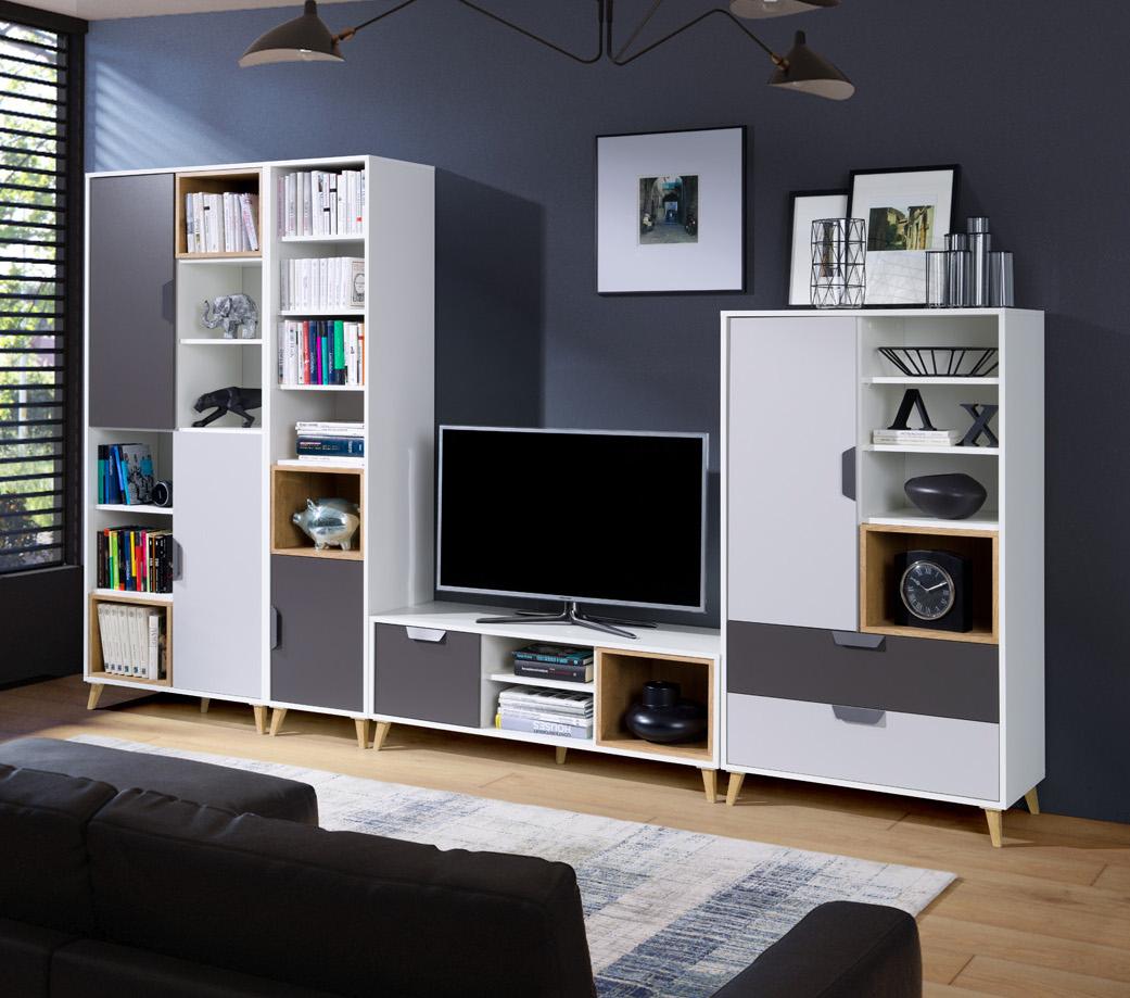 Meble systemowe JOKI 2 to elegancki zestaw, który łączy w sobie nowoczesny design oraz funkcjonalność. Wykonane z wysokiej jakości materiałów, dostępne w modnych kolorach białym, grafitowym i szarym, idealnie wpasują się w różnorodne aranżacje wnętrz.