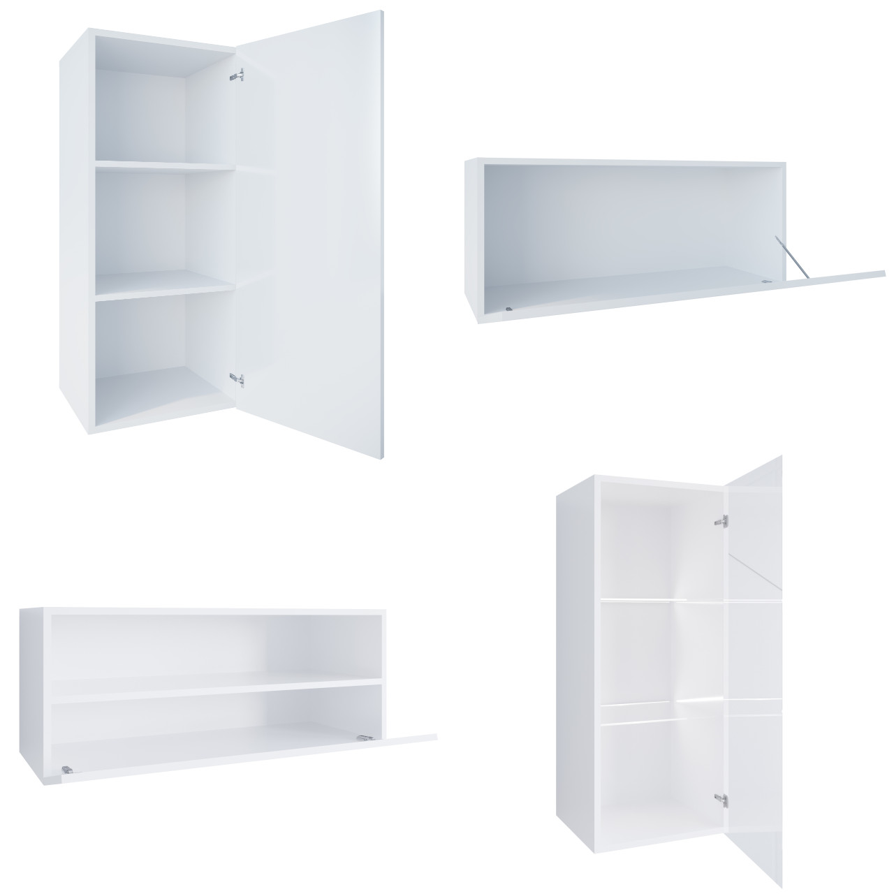 W zestawie dołączone siłowniki dla wybranych elementów w wariancie poziomym oraz półki wewnętrzne dla wybranych elementów w wariancie pionowym. Meble można zakupić w zestawach jak również pojedyncze elementy. |