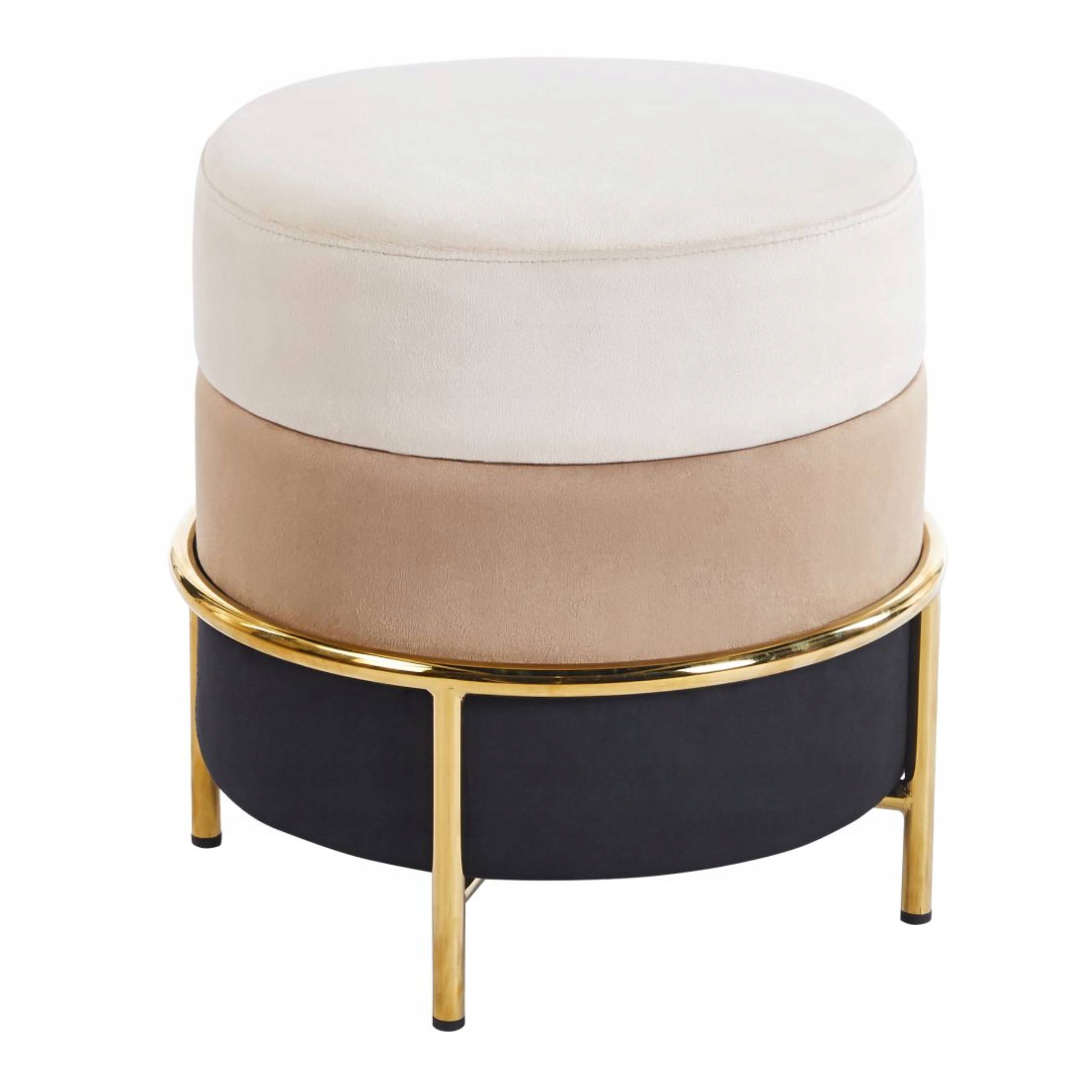Pufa Welurowa BEŻ CAPPUCINO ZŁOTY STELAŻ Stabilna Podnóżek Furnitex