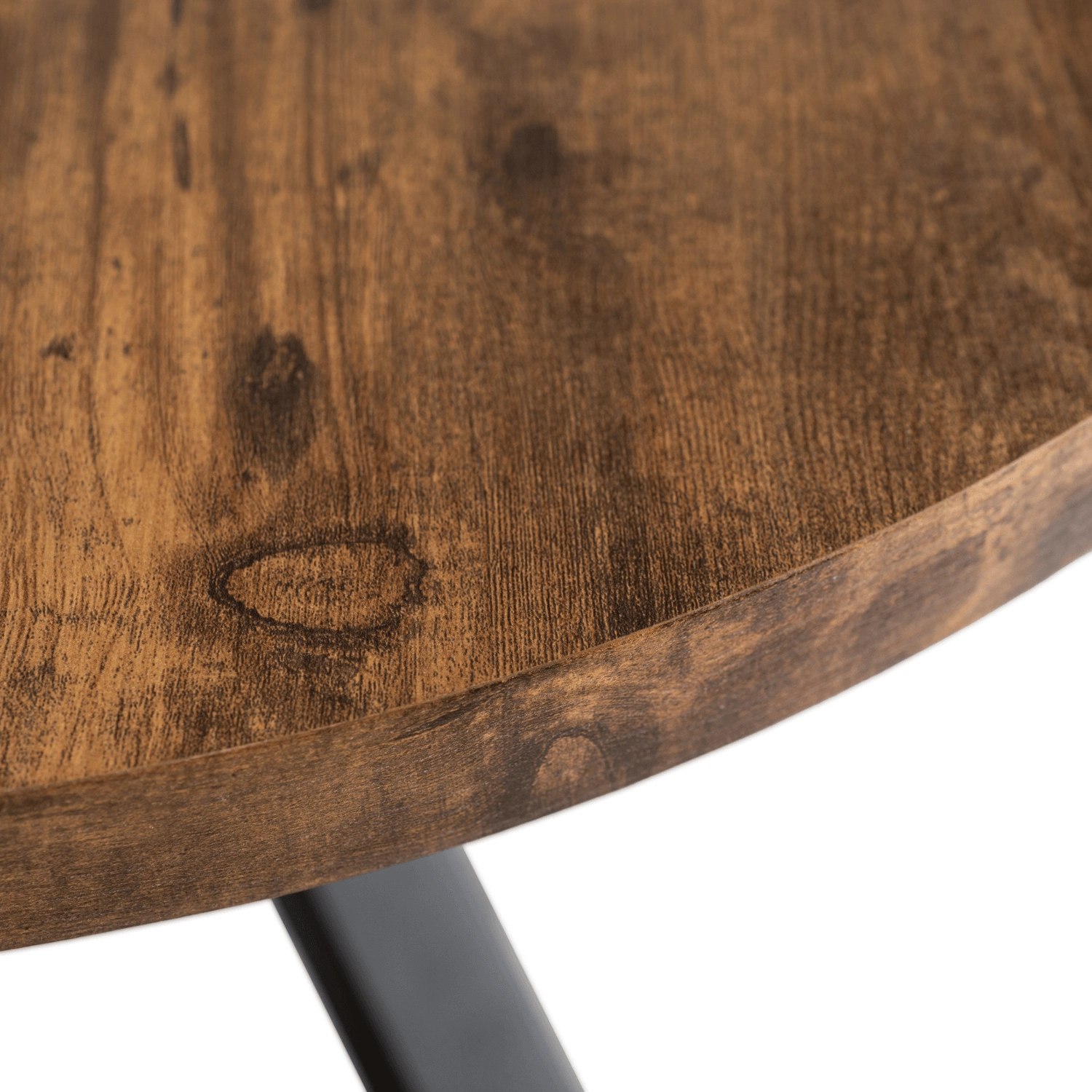 Okrągły blat o średnicy 80 cm z trwałego materiału odporny jest na codzienne użytkowanie – filiżanka z gorącą kawą, domowe dekoracje czy drobne przedmioty nie stanowią dla niego problemu. Ochronne obrzeża oraz gładka powierzchnia zapewniają łatwość w utrzymaniu czystości – wystarczy przetrzeć go wilgotną ściereczką.