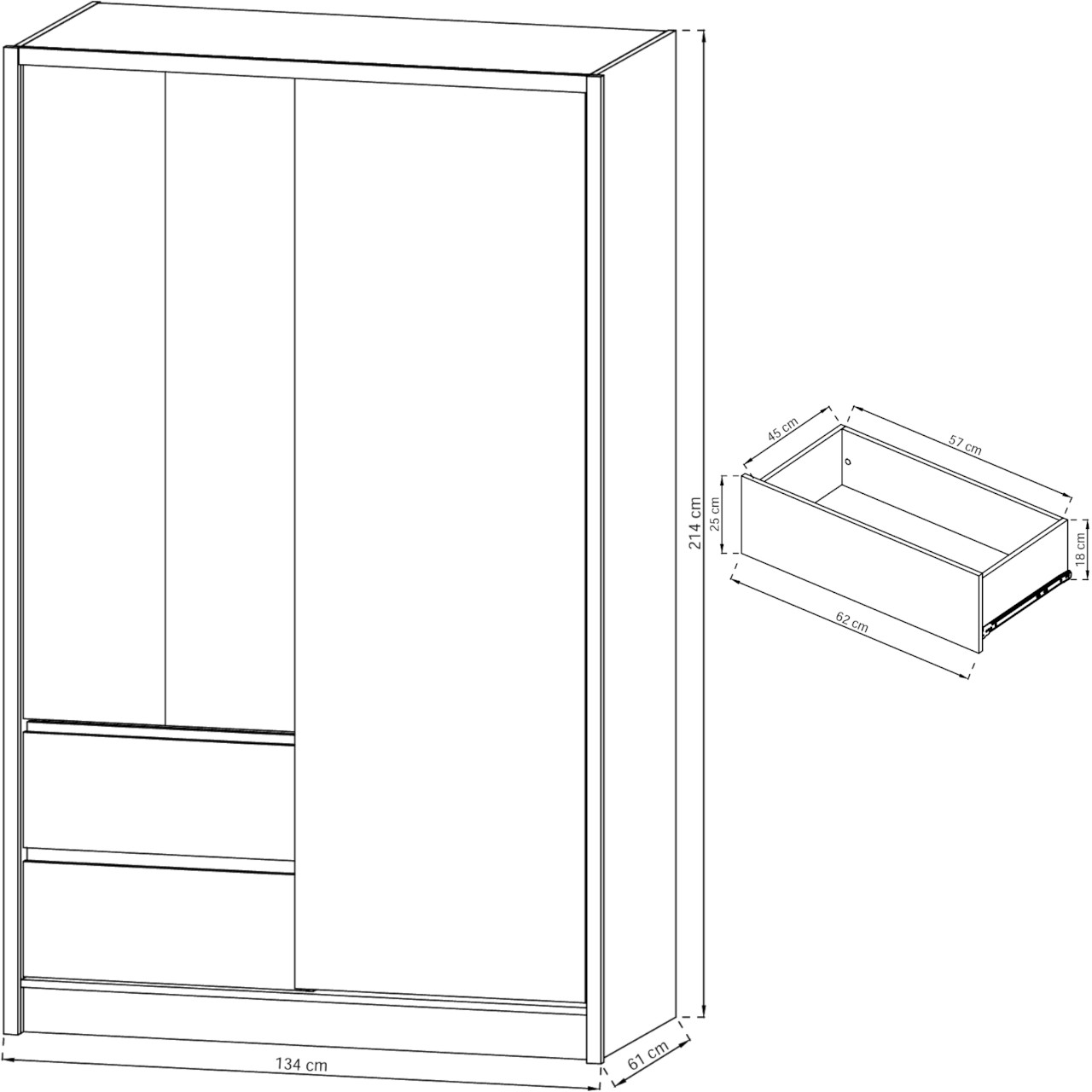 Produkt został wykonany z najwyższej jakości materiałów, co zapewnia mu dużą trwałość i odporność na zarysowania oraz działanie wilgoci. Czystość szafy można zachować tylko przy użyciu zwilżonej, miękkiej ściereczki. W skład materiałów użytych do produkcji wchodzą: