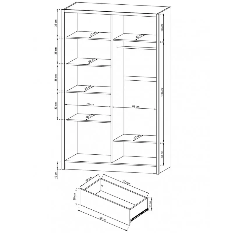 Drzwi szafy są częściowo pokryte lustrem, co nie tylko dodaje elegancji, ale również optycznie powiększa przestrzeń. Dzięki zastosowanemu mechanizmowi przesuwnemu, codzienne użytkowanie jest niezwykle komfortowe.