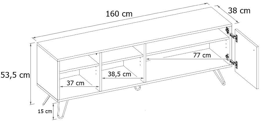 Wymiary 158 × 40 × 53.5 cm