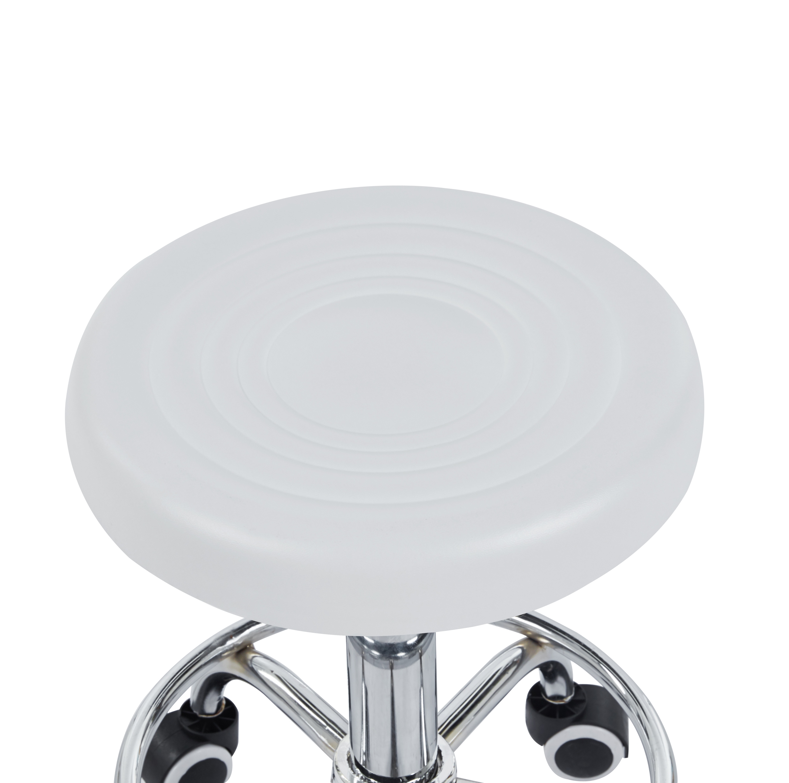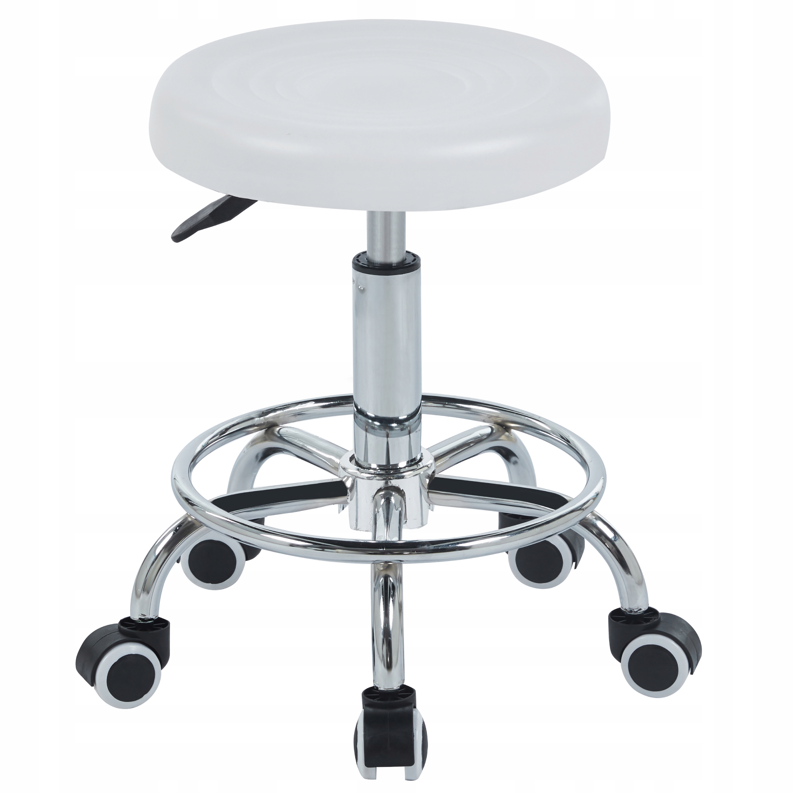 Krzesło Rondo Fryzjerskie BIAŁE Z EKO SKÓRY Chromowana podstawa REGULOWANE