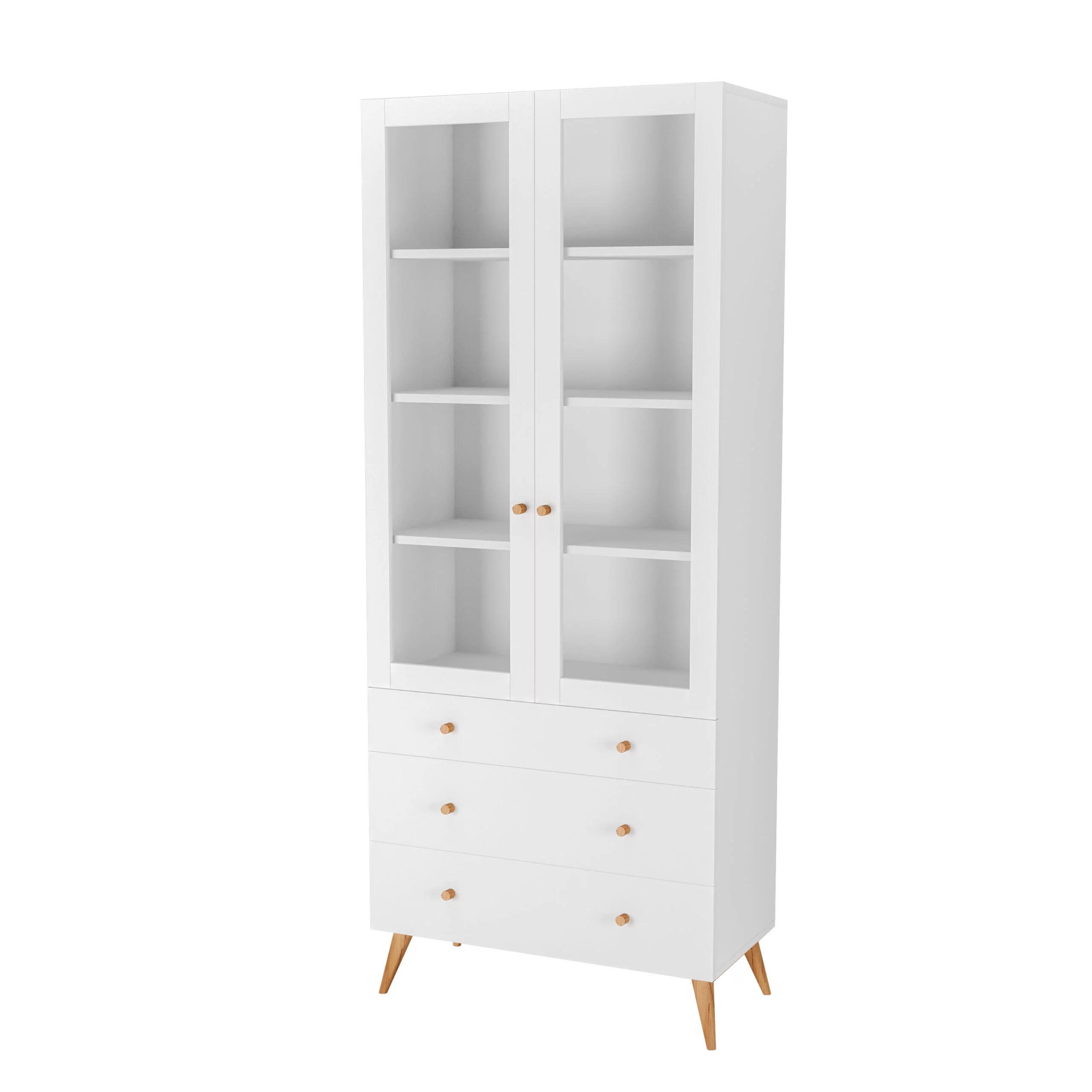 Witryna HEPOLA to doskonałe połączenie skandynawskiego minimalizmu z funkcjonalnością, które stanowi idealne uzupełnienie każdego wnętrza. Jej unikalny design, oparty na prostych i eleganckich liniach, harmonijnie współtworzy przestrzeń dzięki wykorzystaniu materiałów najwyższej jakości, zapewniających trwałość na długie lata. Witryna wyposażona jest w trzy pojemne szuflady, które umożliwiają praktyczne przechowywanie oraz organizację różnych przedmiotów, co sprzyja utrzymaniu porządku w domowej przestrzeni. Dodatkowo, górna część witryny z dwiema częściowo przeszklonymi drzwiami nie tylko dodaje jej uroku, ale także pozwala na elegancką ekspozycję wartościowych lub delikatnych przedmiotów.