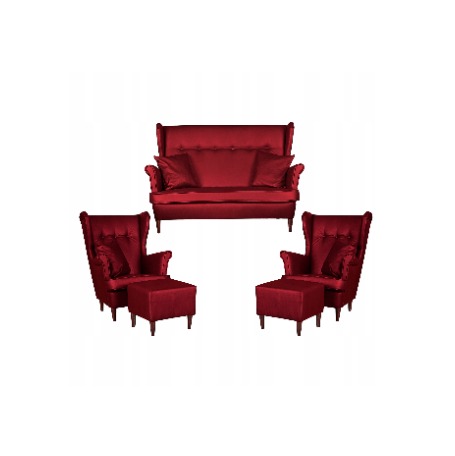 - Sofa, 2 fotele i 2 podnóżki typu Uszak na nóżkach z kolekcji eko skóra